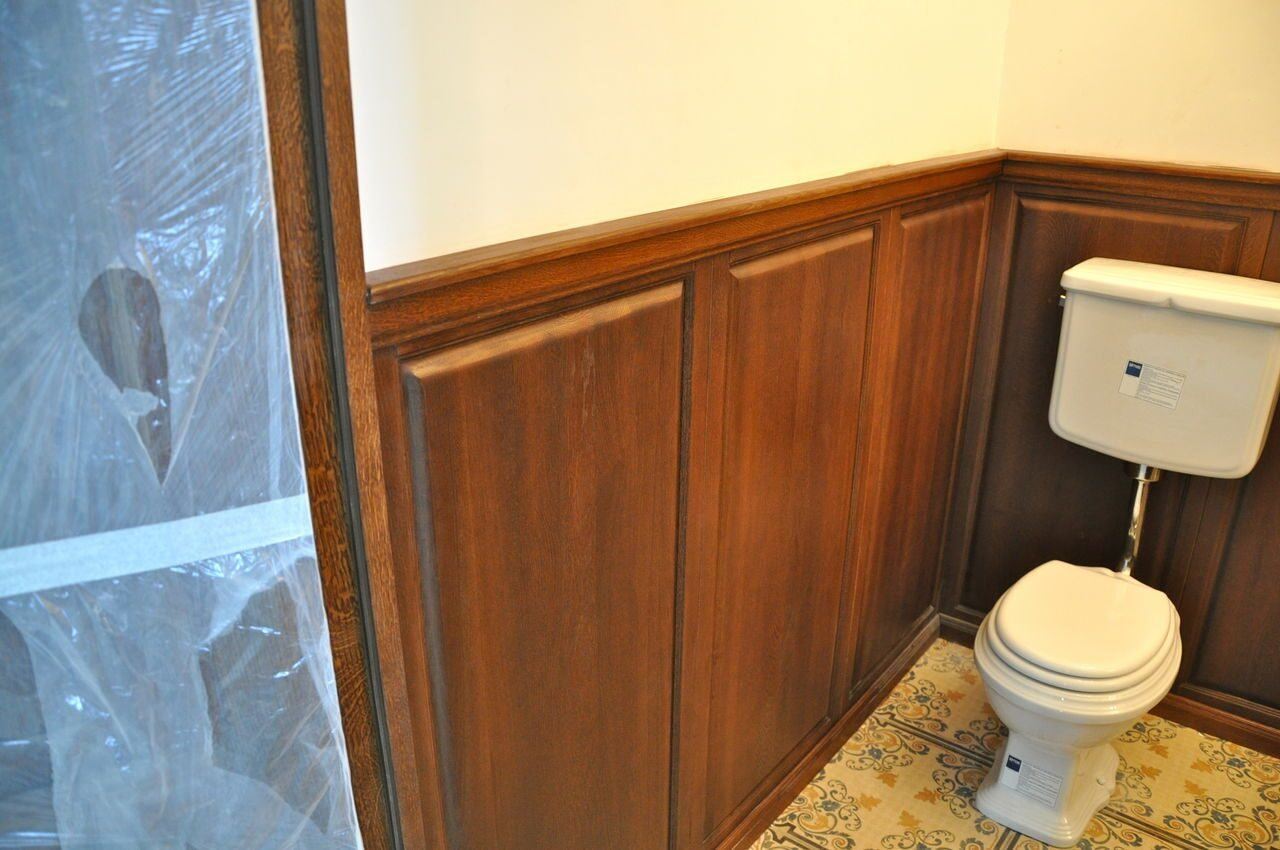Отделка туалета деревянными панелями