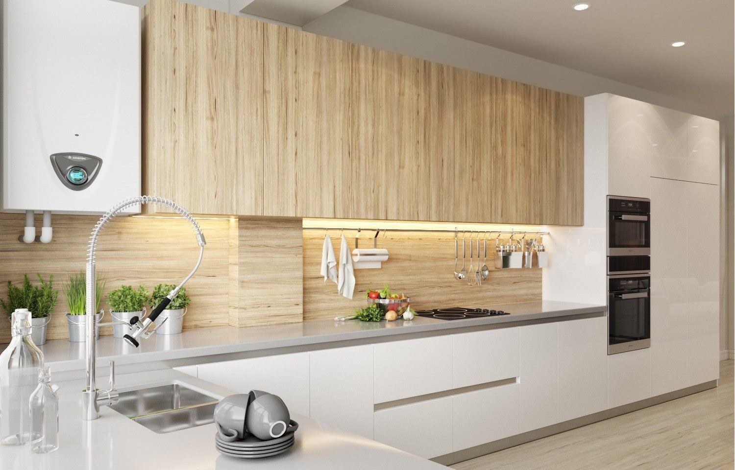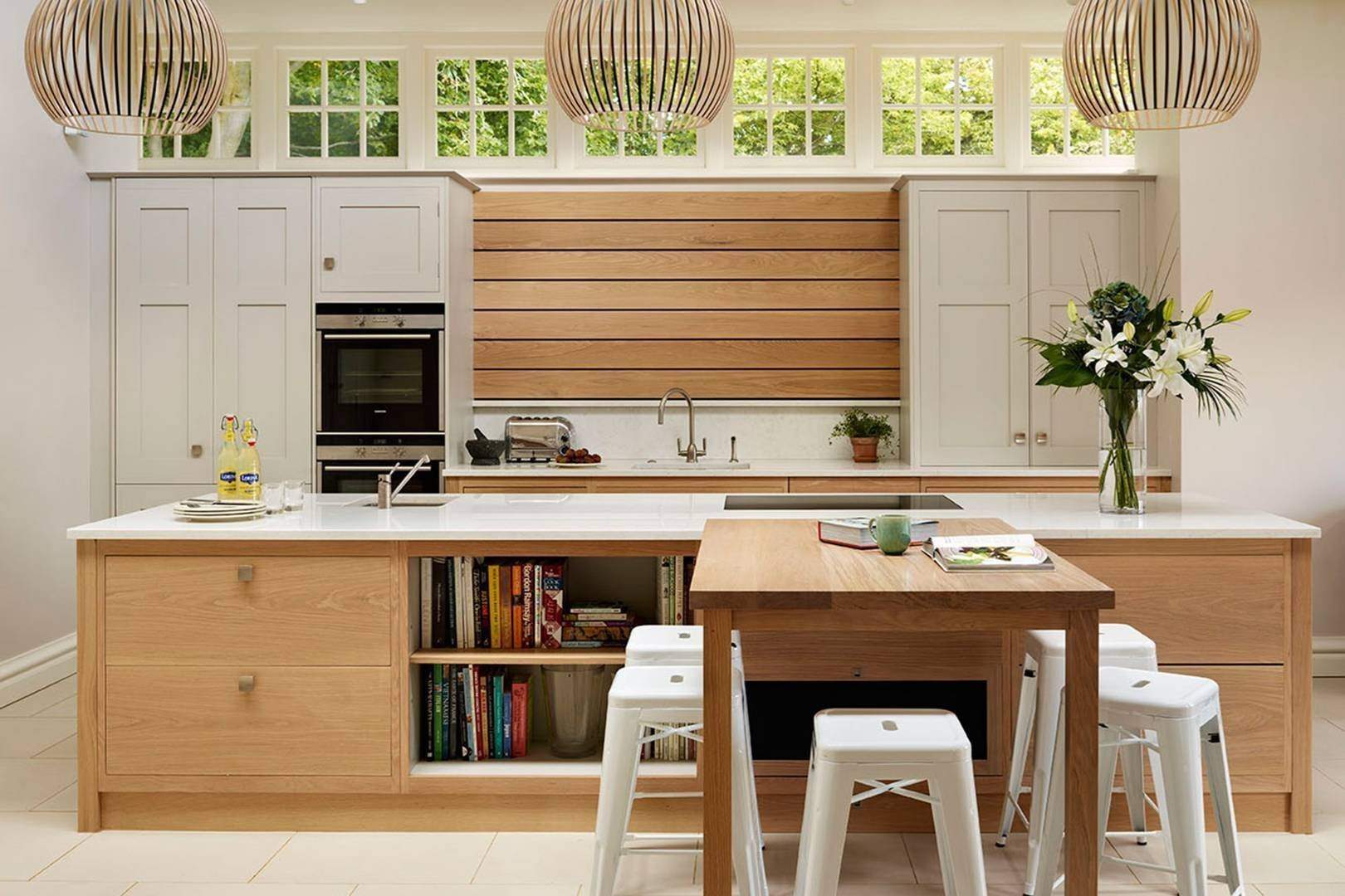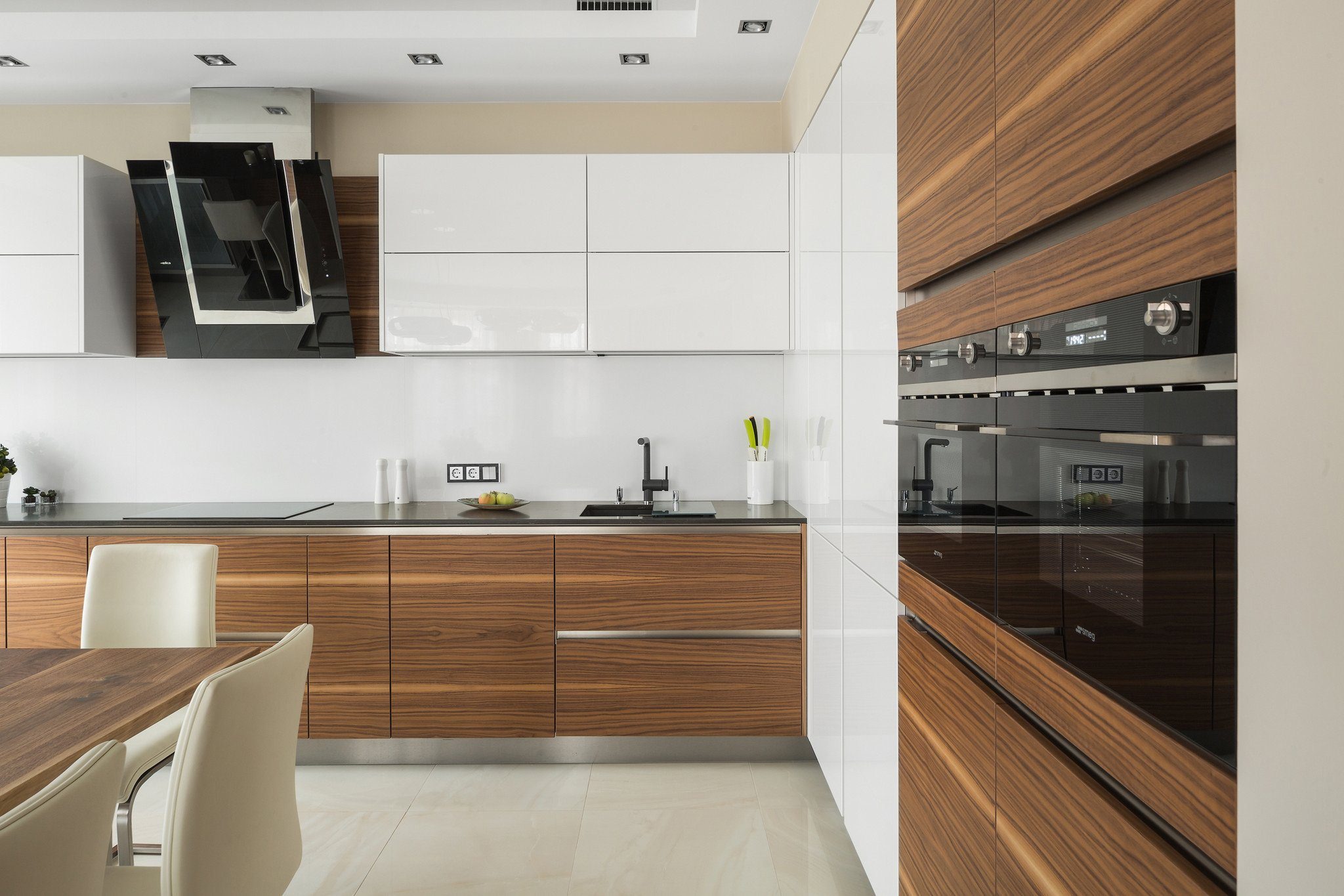 Кухни белые с деревом в современном стиле
