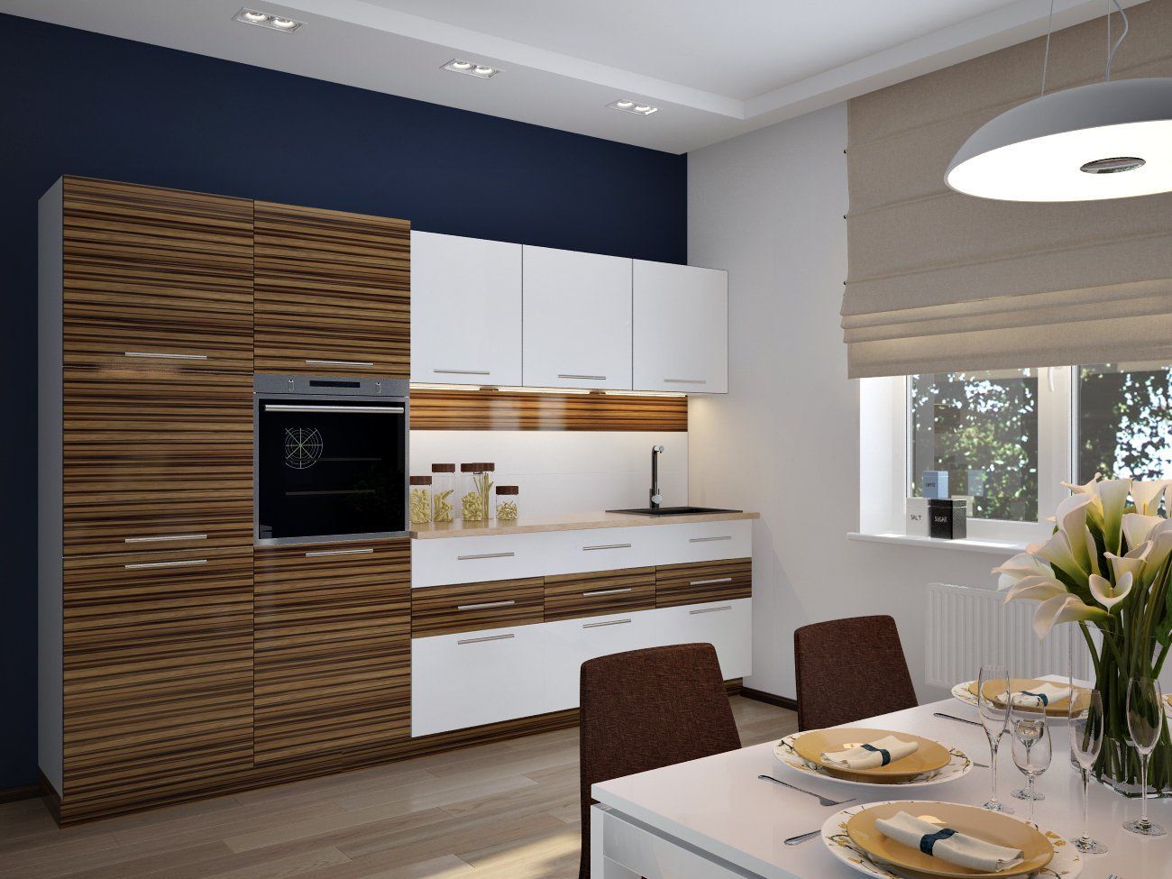 Кухня сочетание белого и дерева