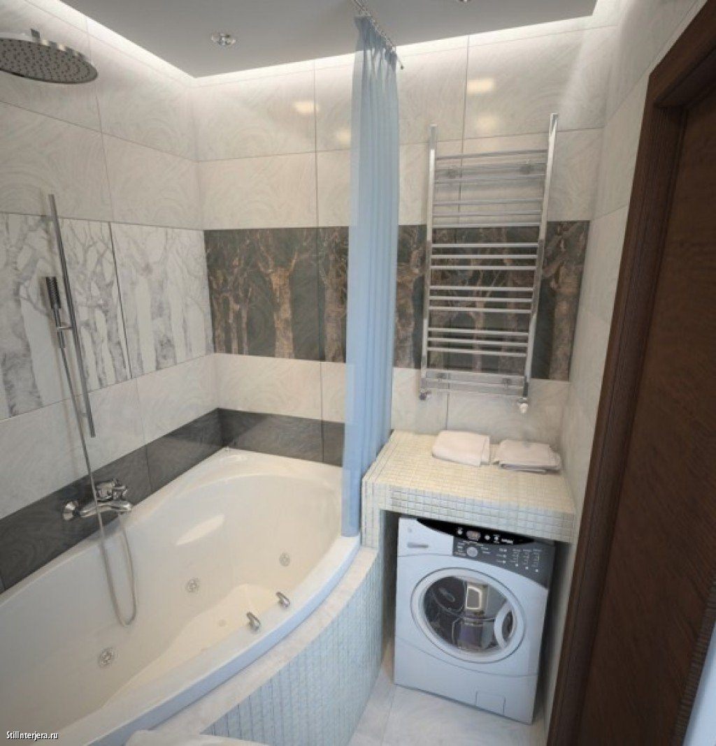 Ванная в хрущевке с душевой кабиной и стиральной машиной