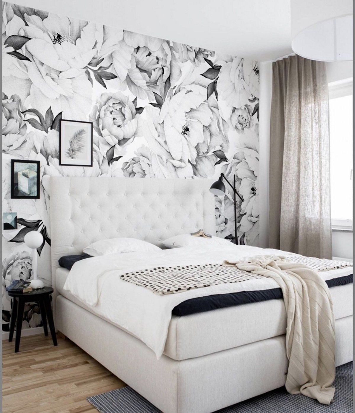 Обои черно-белые для стен в интерьере спальная