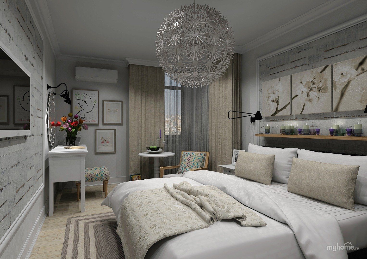 Декор спальни в светлых тонах в стиле икеа