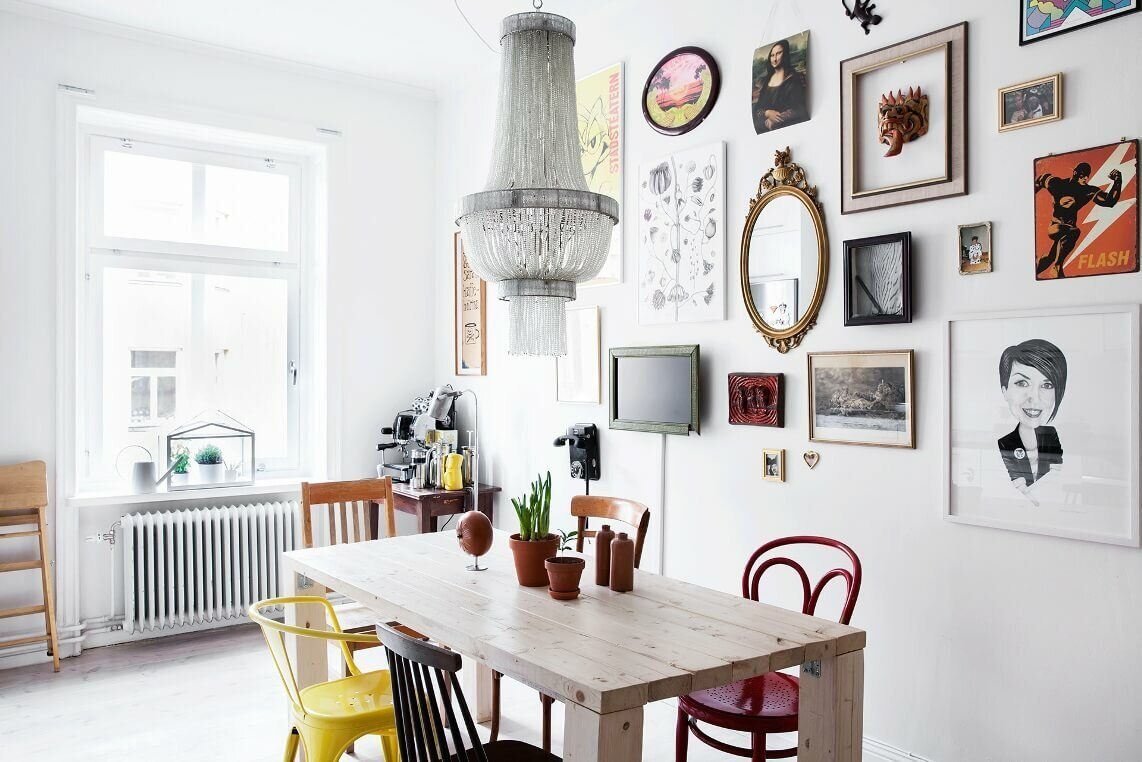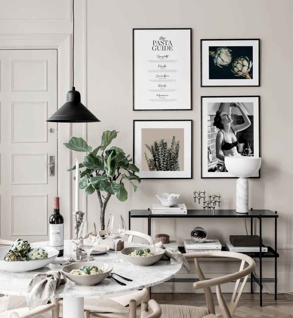 Композиция из картин на стене в кухне