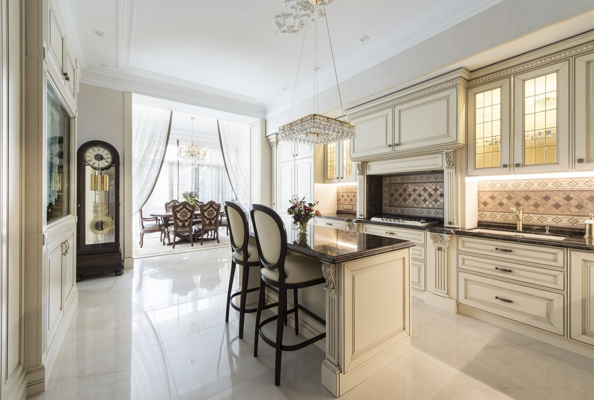 Кухня гостиная в классическом стиле