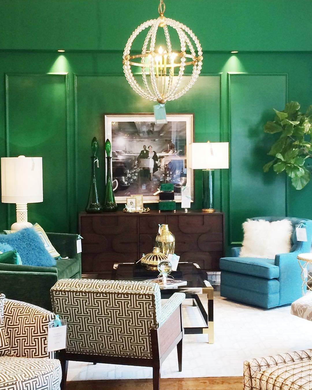 Гостиные в изумрудном цвете