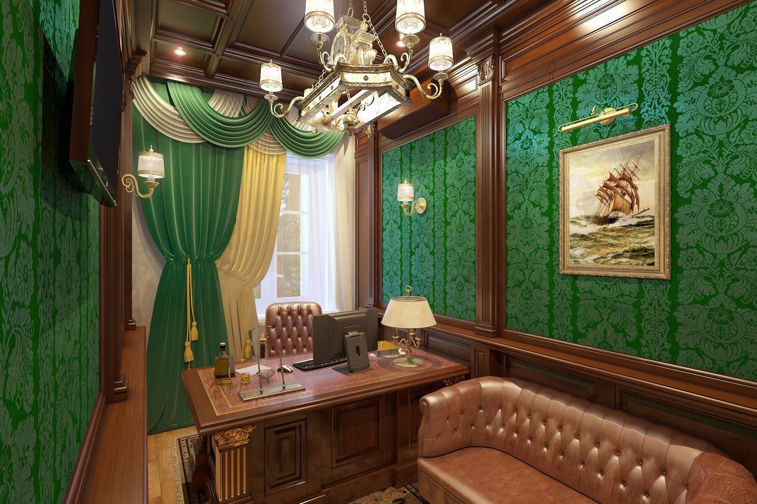 Зеленый интерьер кабинета