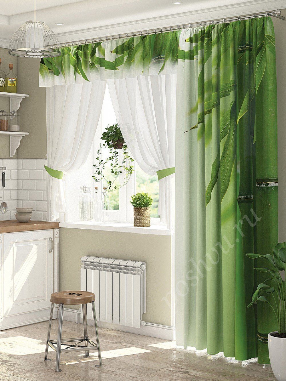 Комплект штор для кухни «иллюзия», 300х150 см, цвет зелёный, принт микс