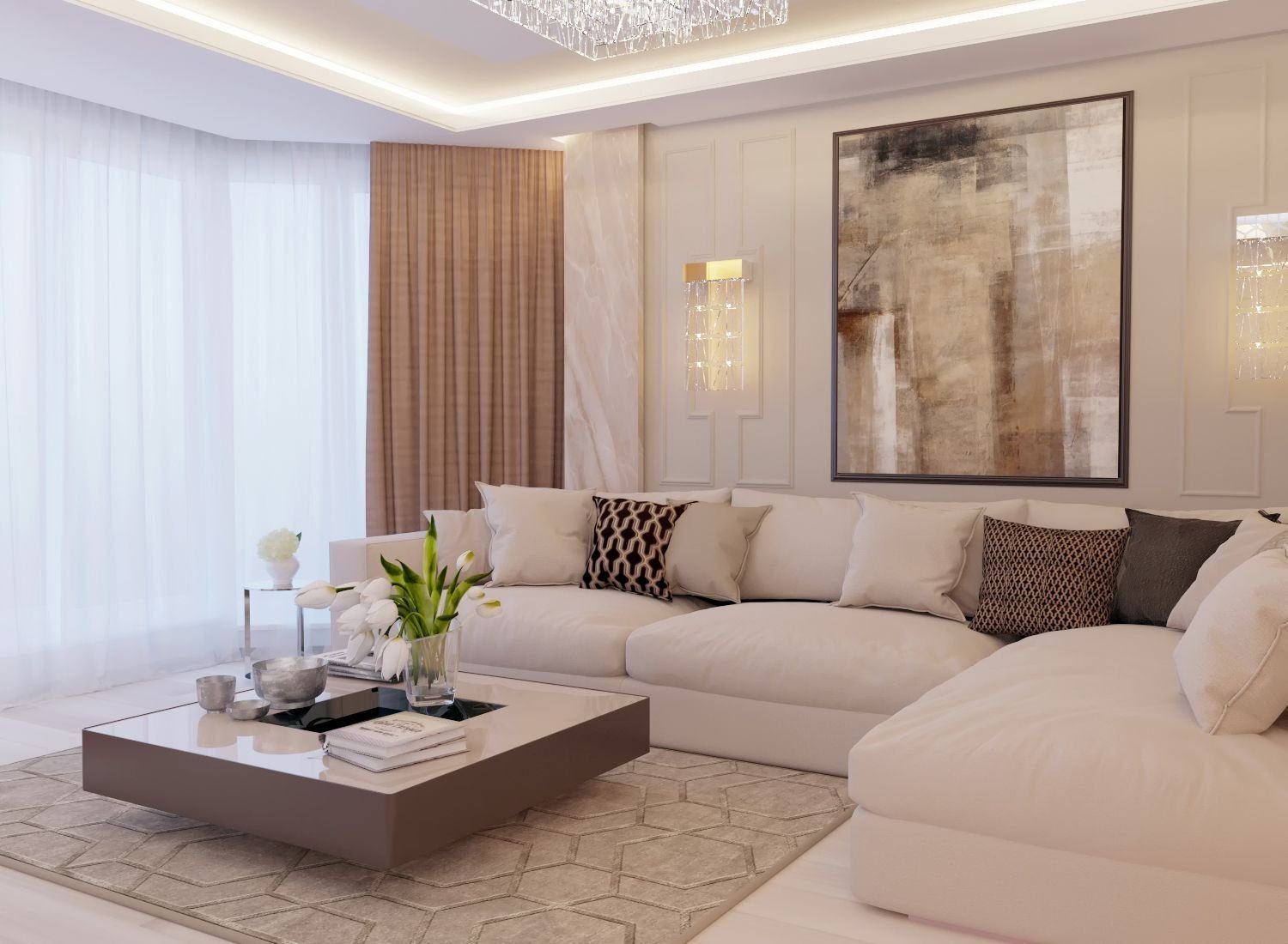 Линкруста в интерьере гостиной в стиле Неоклассика