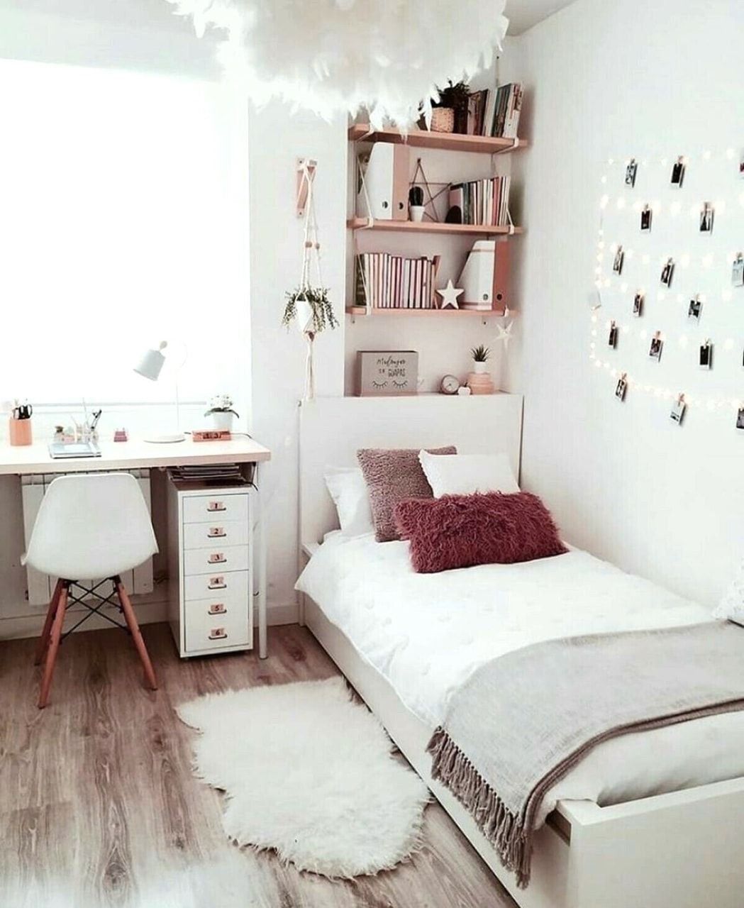 Спальня для девушки с белой мебелью