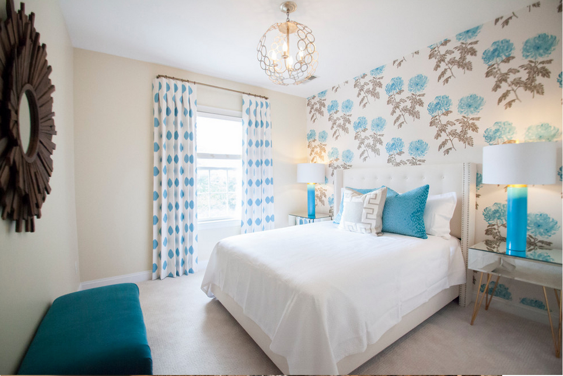 Обои в спальню бирюзового цвета