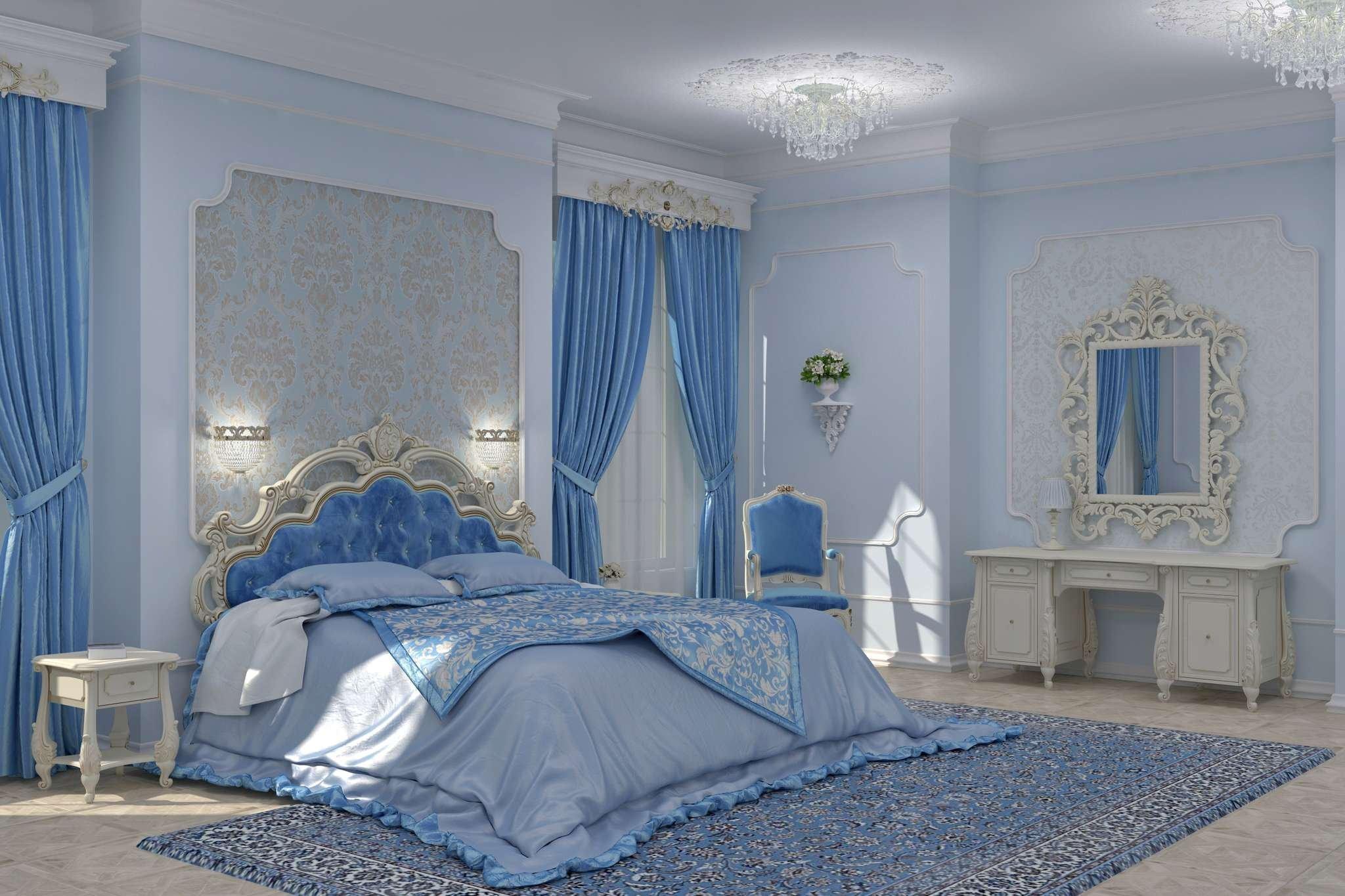 Спальная в голубых тонах