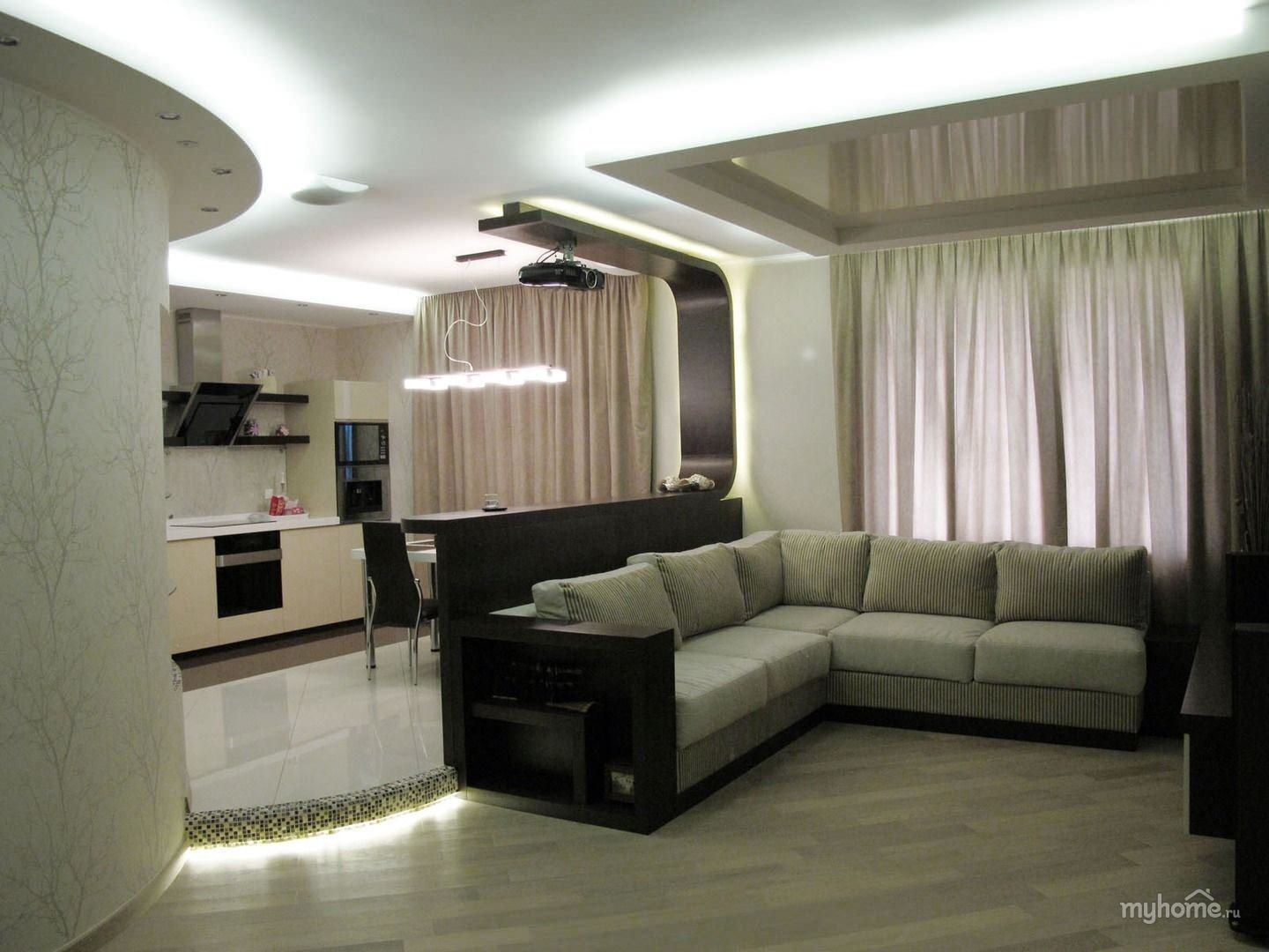 Кухня гостиная с угловым диваном
