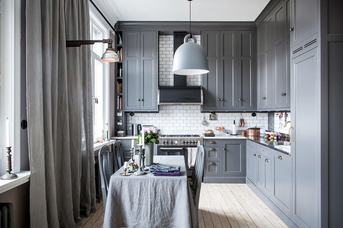 Оттенки серого в сочетании с бежевым в интерьере кухни