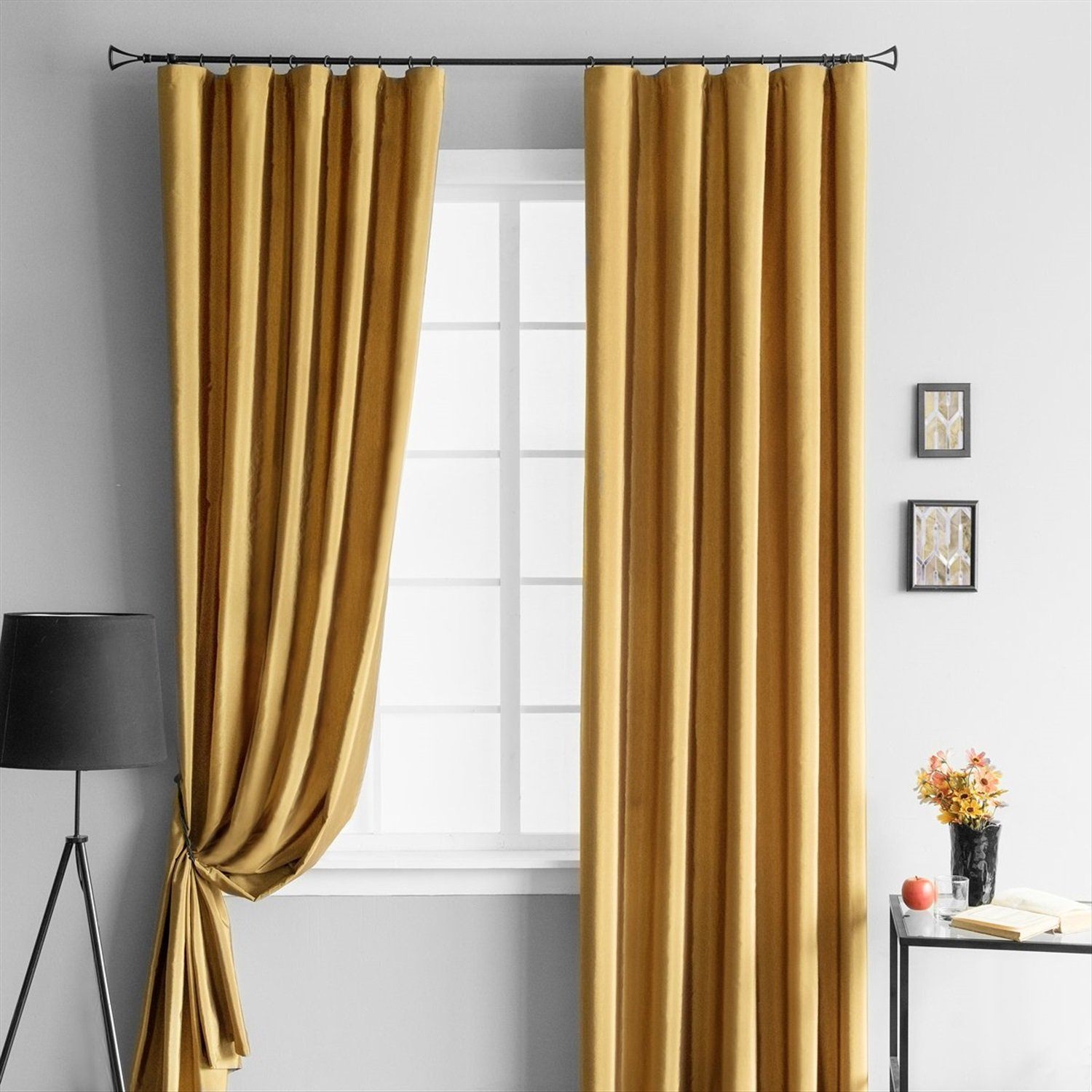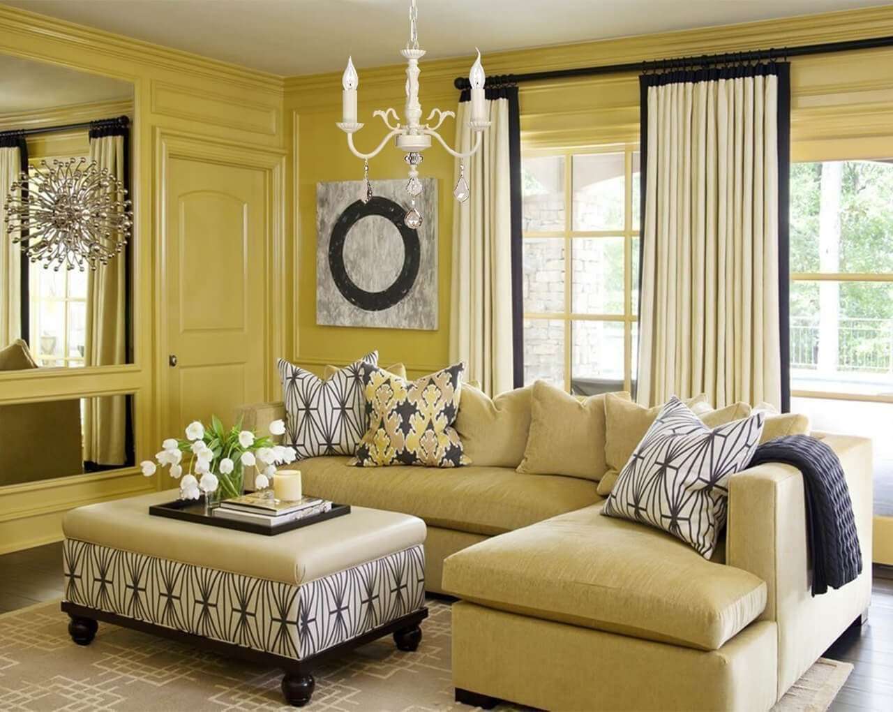 Горчичные шторы в интерьере