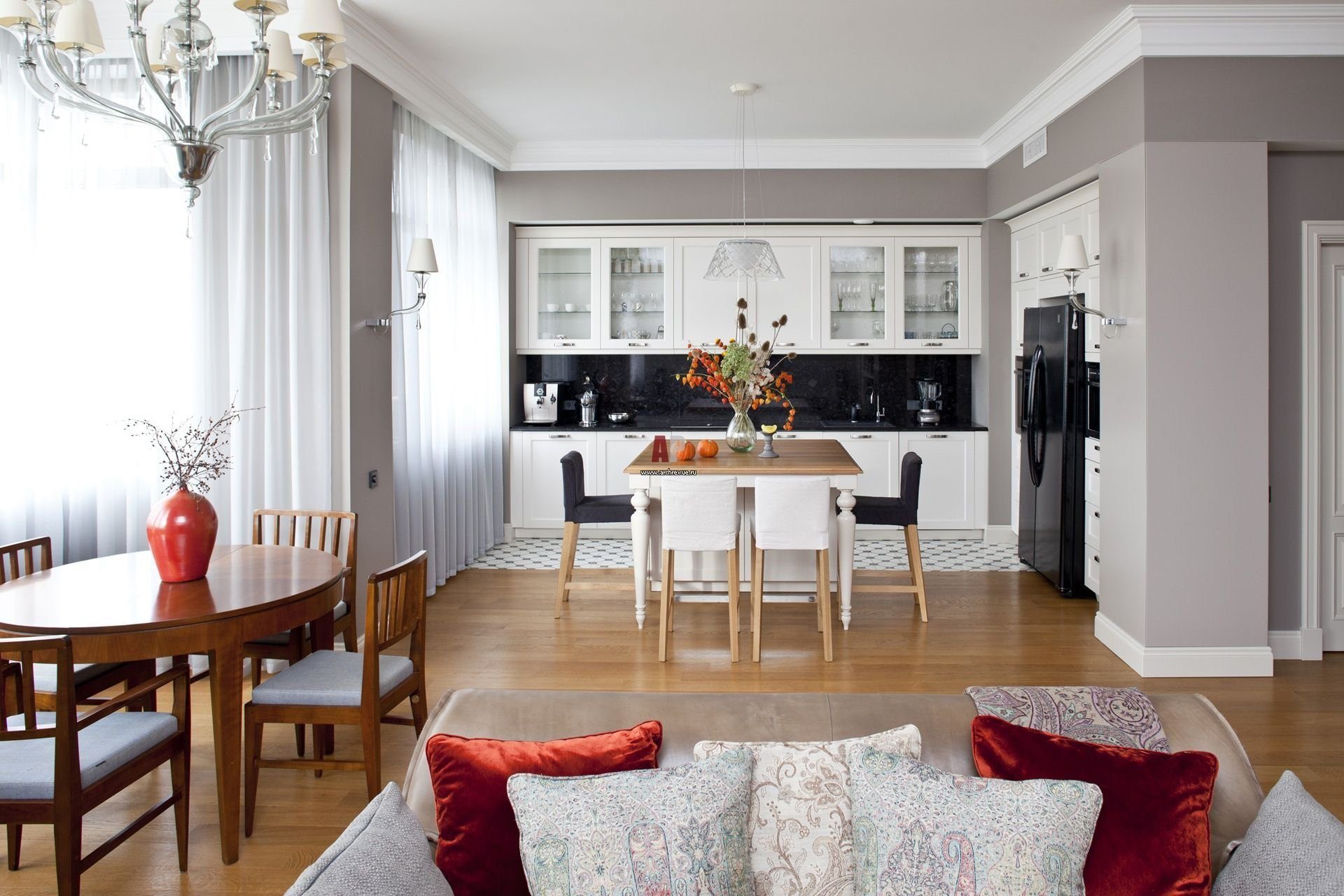 Современные кухни Неоклассика в интерьере кухни гостинной