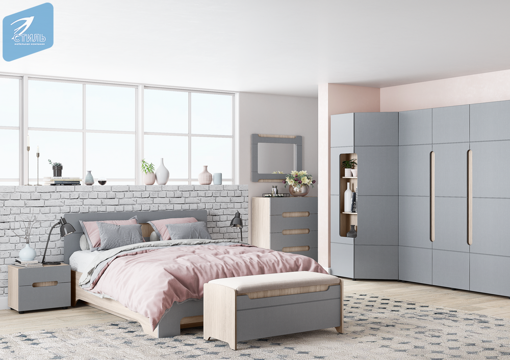 Спальня Napoli (крафт серый/белый глянец) Napoli-KS-01-DKSB