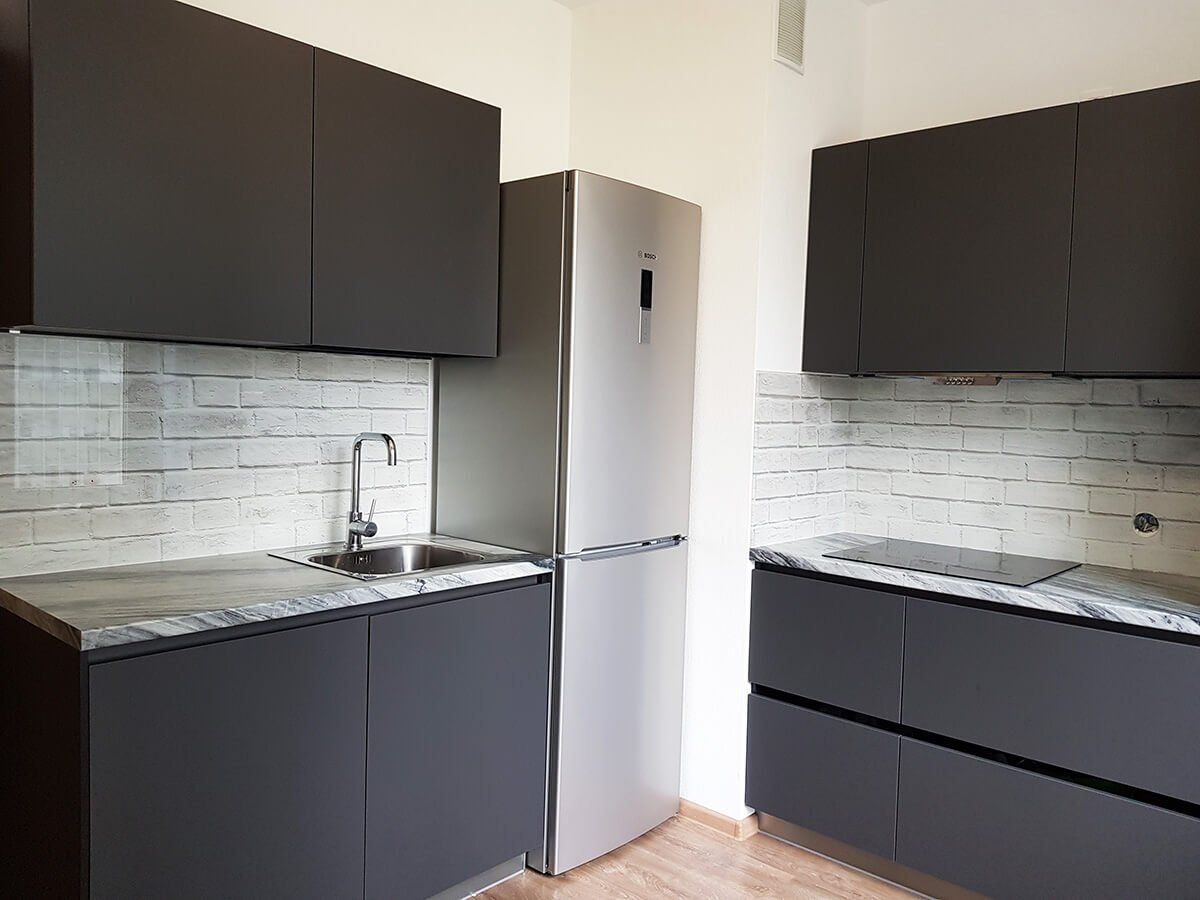 Серый однотонный фартук на кухне