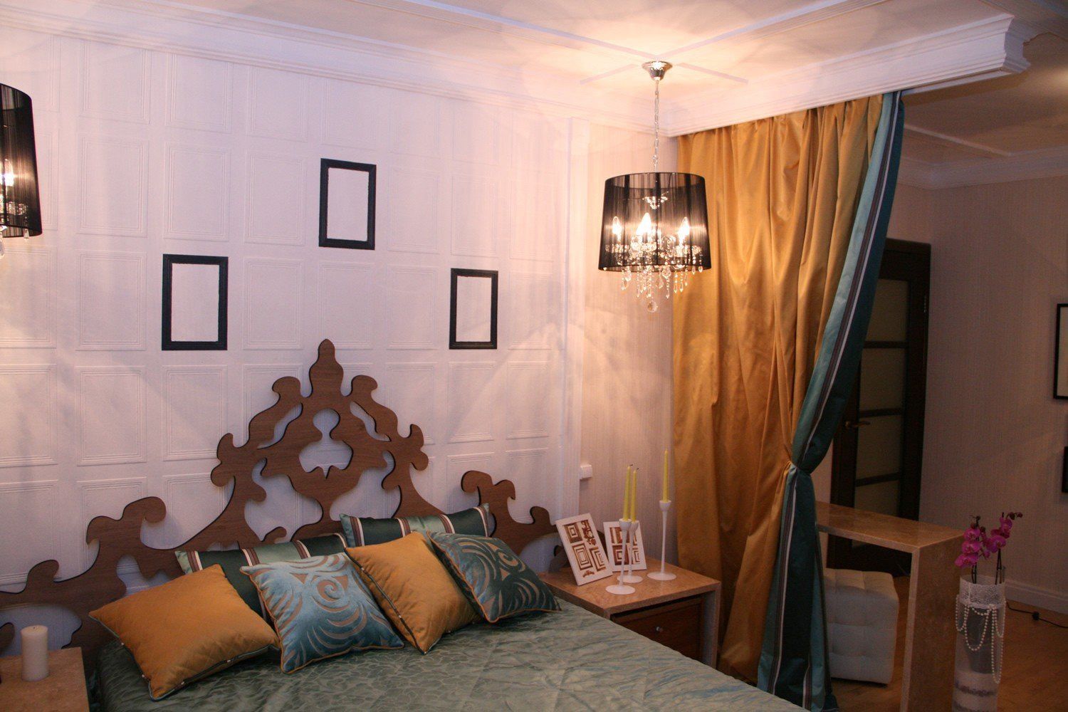 Зонирование шторами спальной зоны