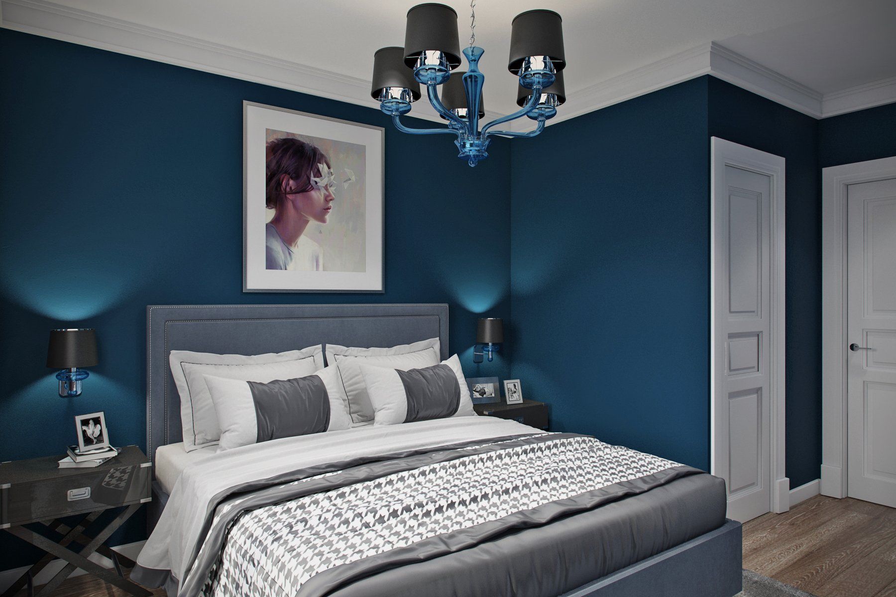 Синие стены в спальне