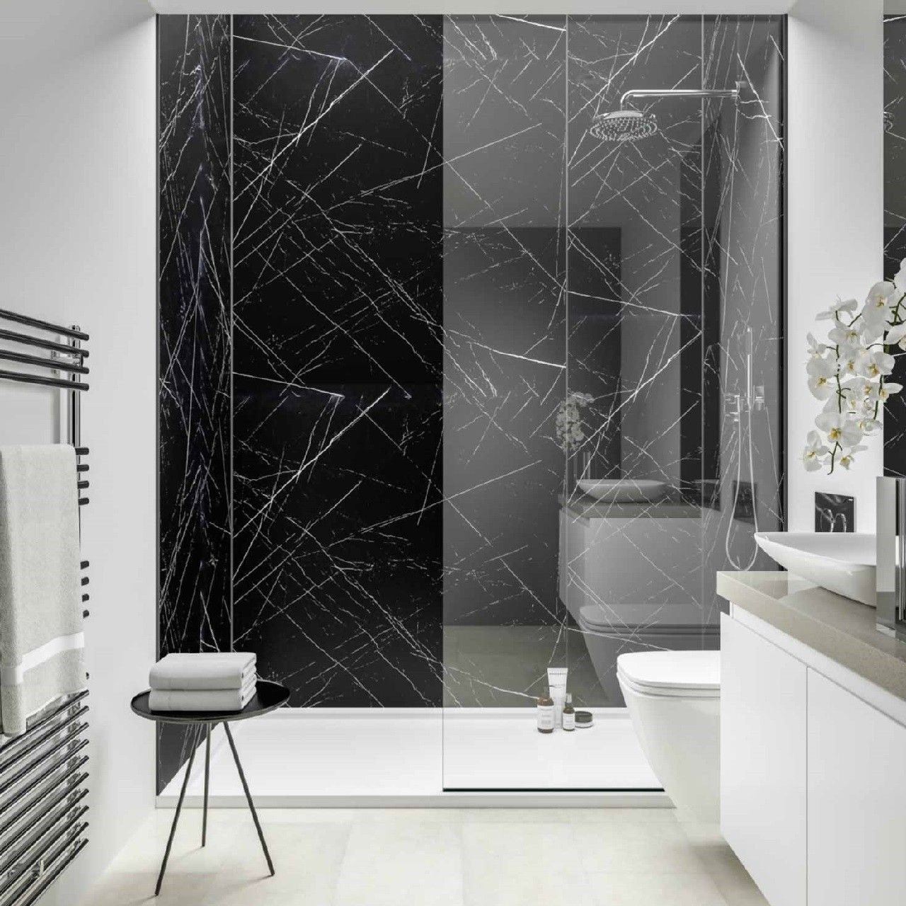 Ванная комната под черный мрамор