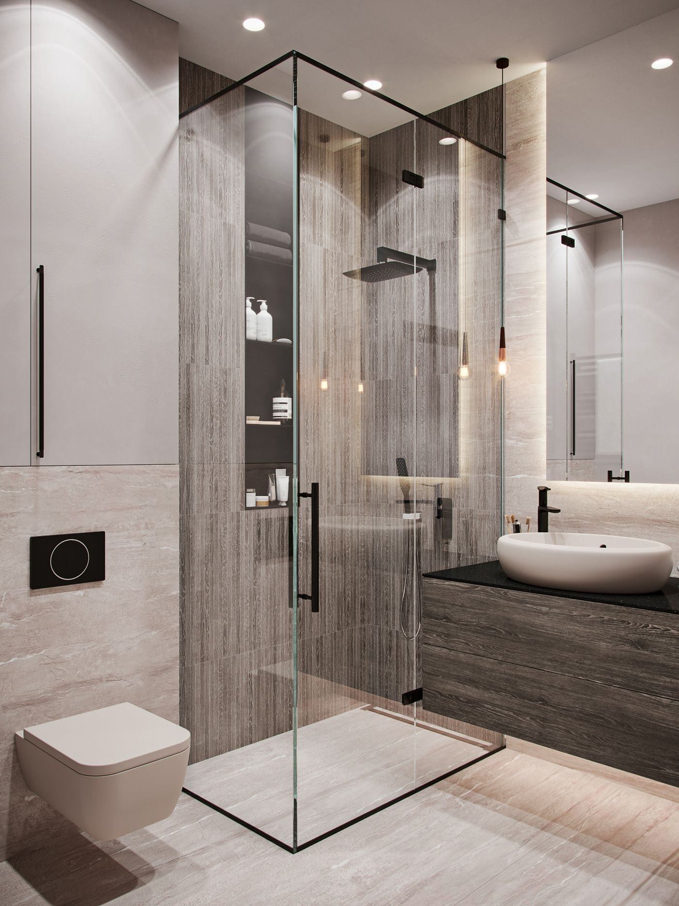 Стильный санузел с душевой