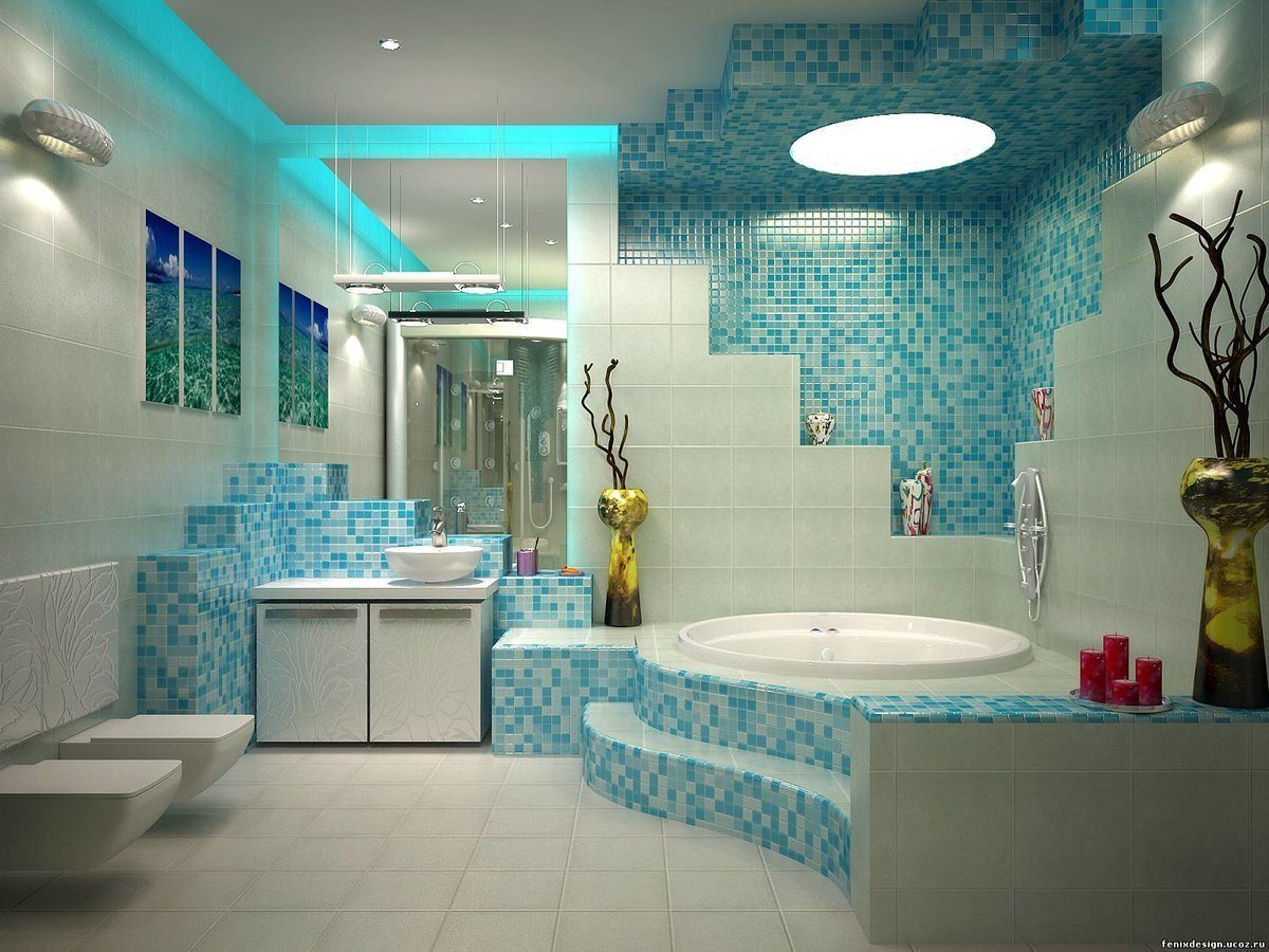 Интерьер ванной комнаты в голубых тонах стиль современный