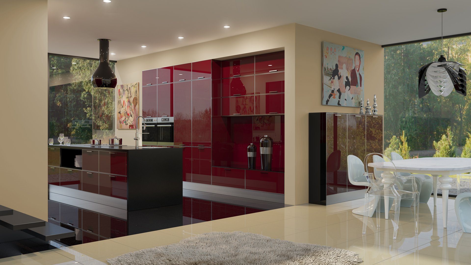 Современные кухни со стеклянными фасадами