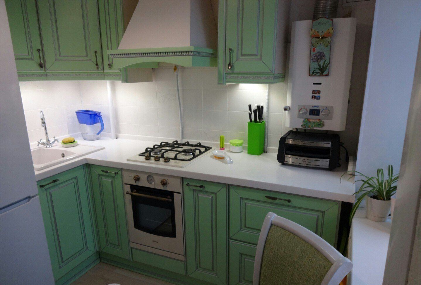 Маленькая кухня хрущевка 4 кв с газовой колонкой