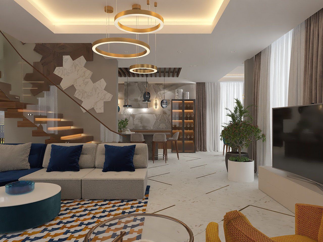 Гостиная в частном доме в стиле Контемпорари