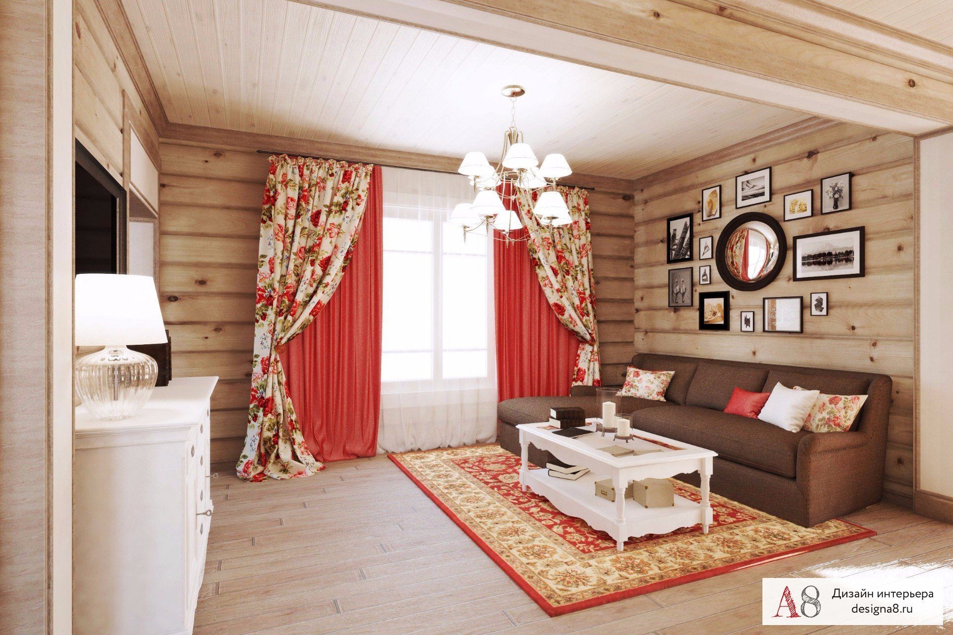 Гостиная Прованс Кантри в бревенчатом доме