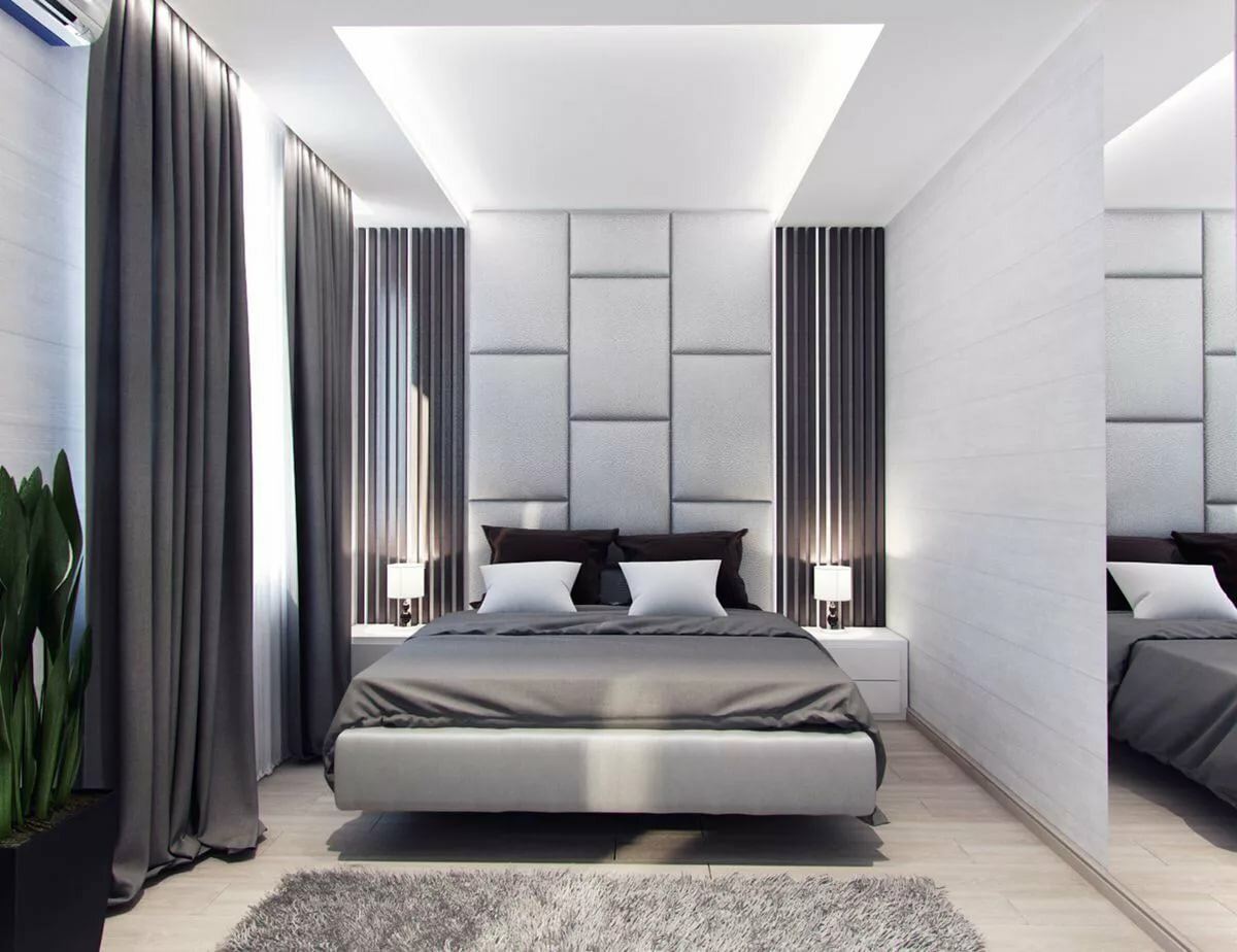 Современная серая спальня