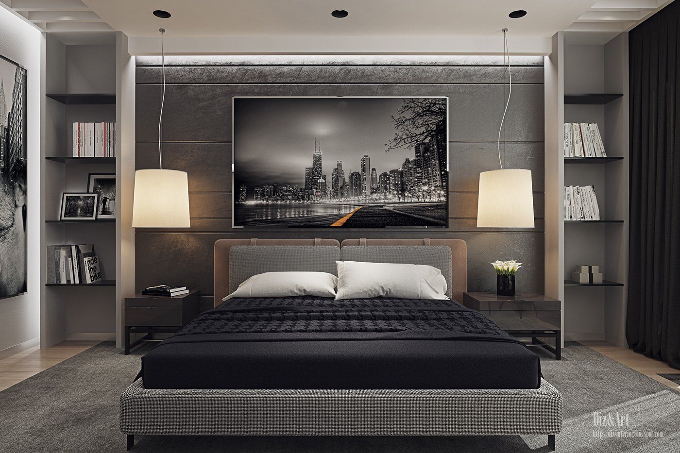 Визуализация современной спальни