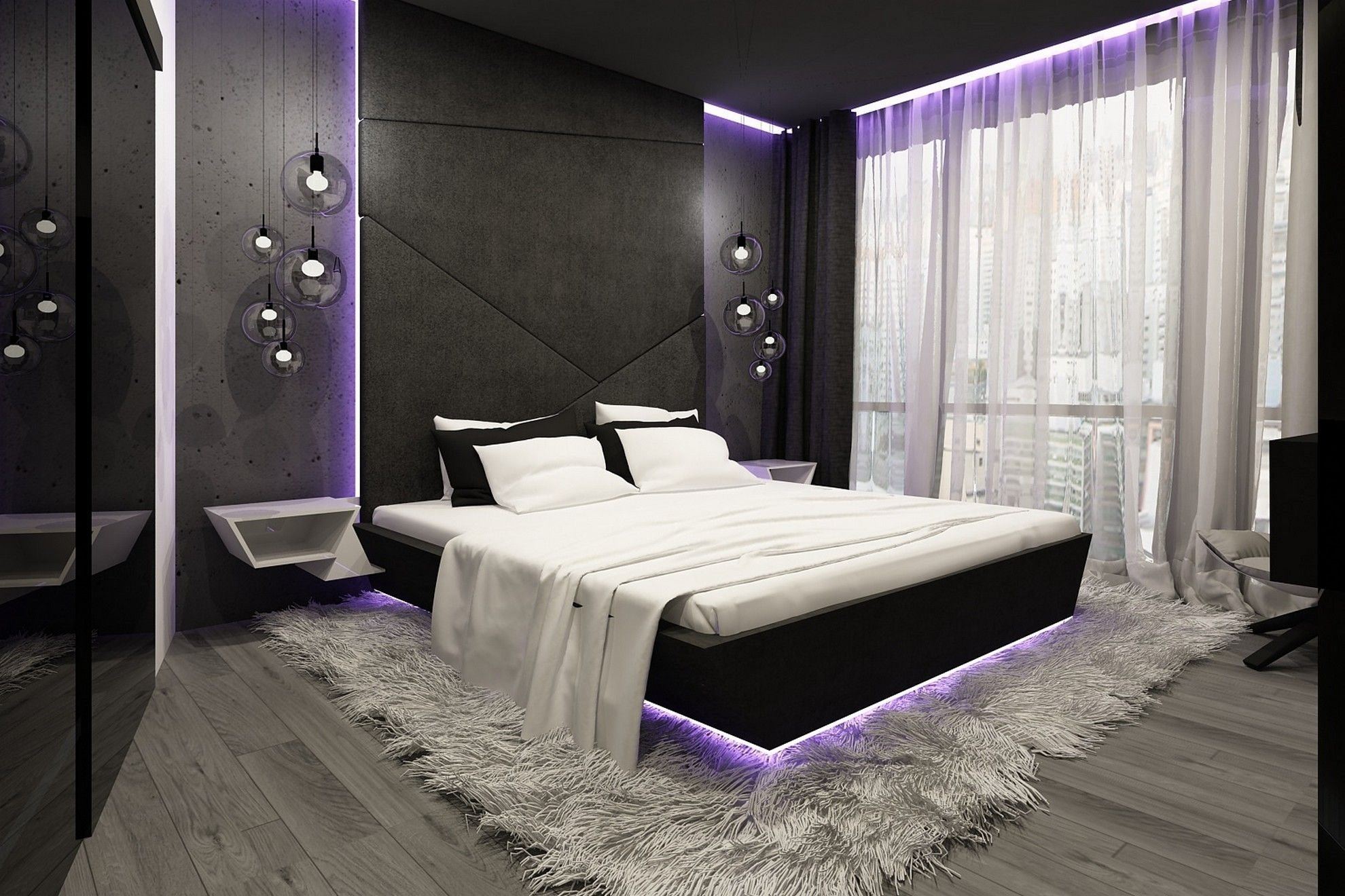 Черно фиолетовая спальня