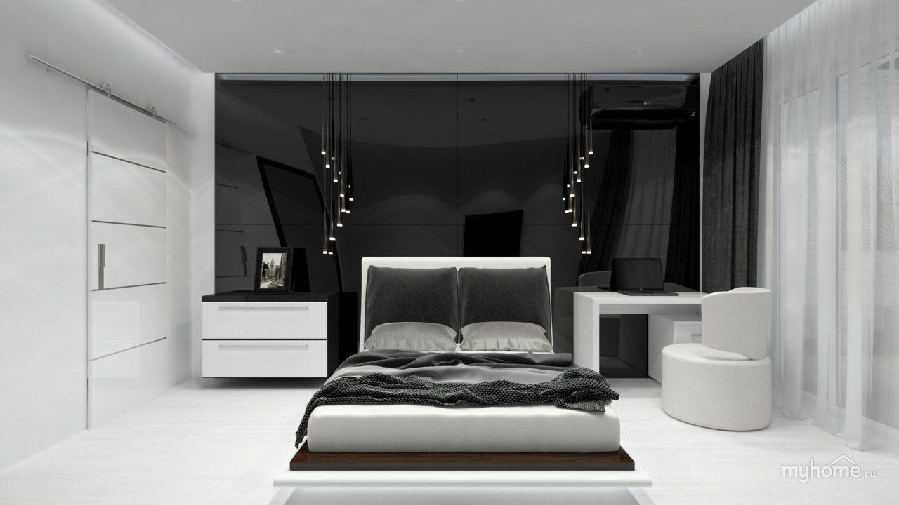 Спальня в современном стиле черно-белая