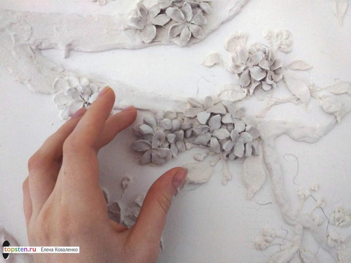 Цветы из шпаклевки на стене