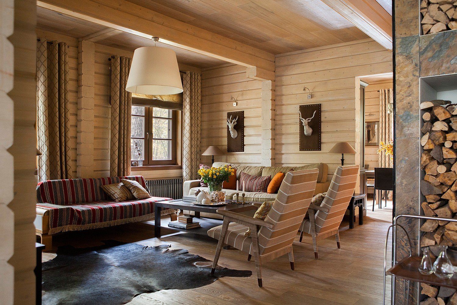 Интерьеры в домах из клееного бруса в скандинавском стиле