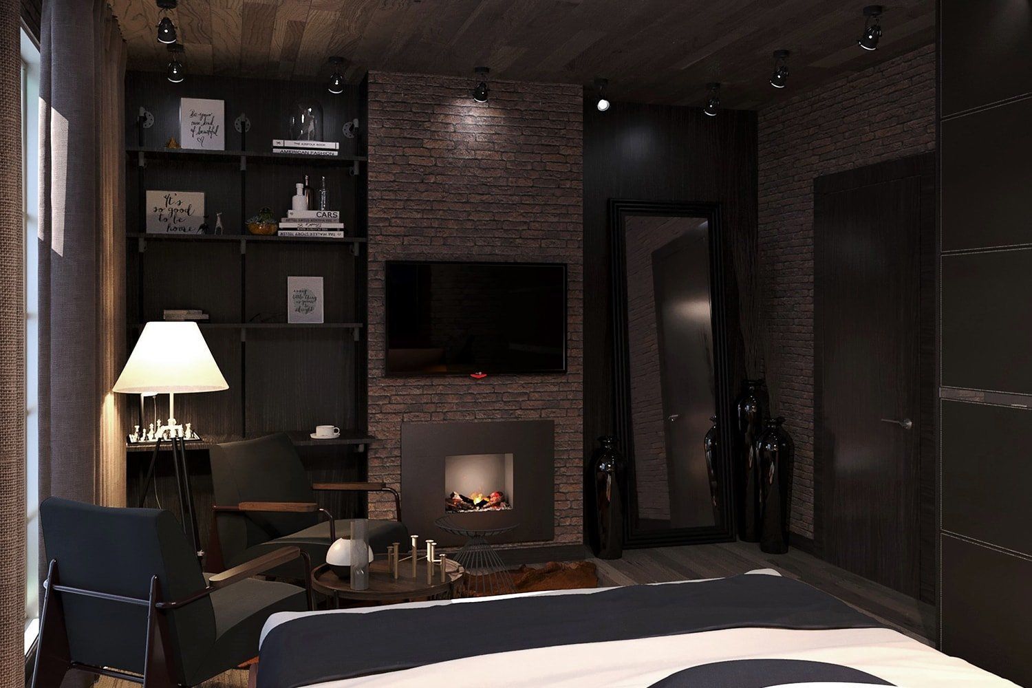 Мужской интерьер с камином