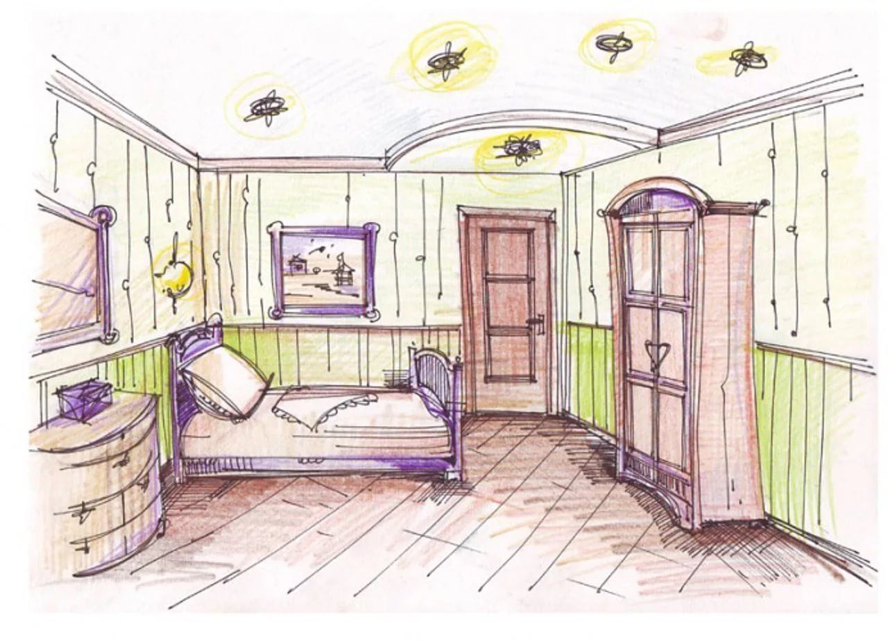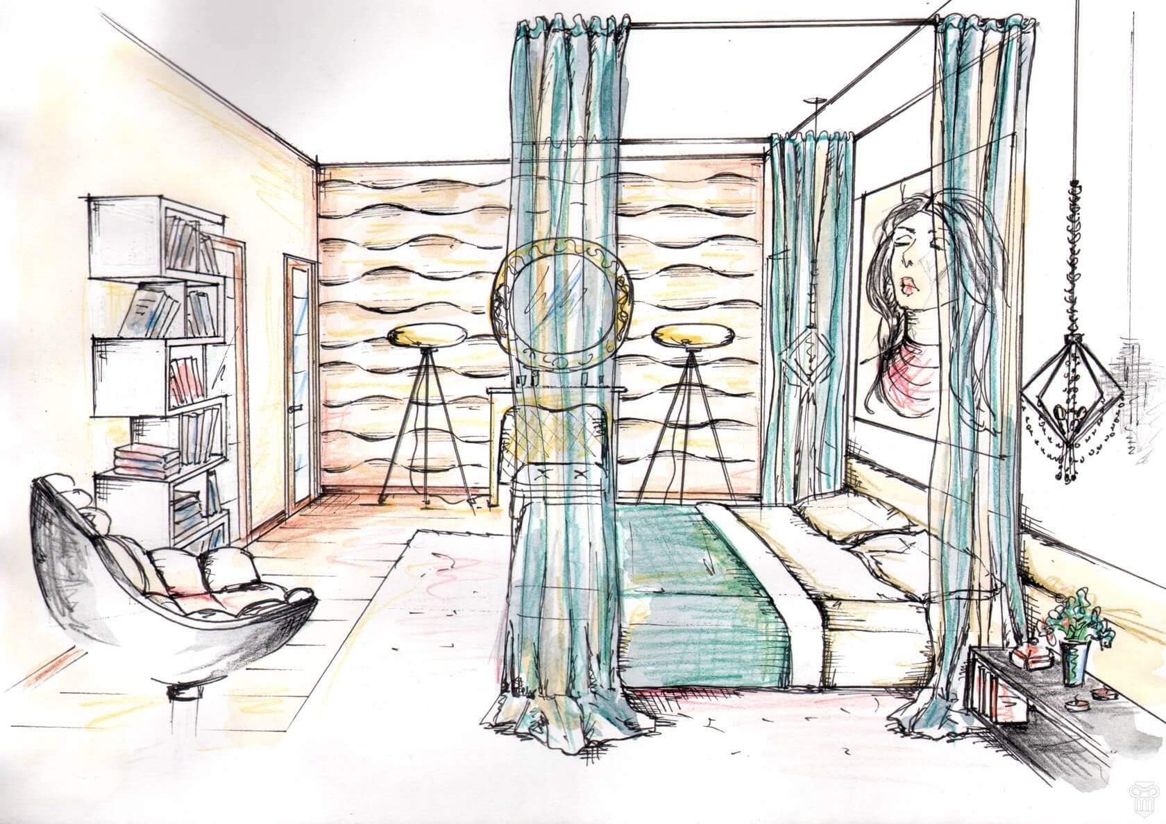 Дизайн комнаты подростков набросок интерьера