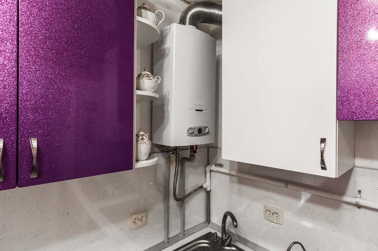 Интерьер кухни 5м.кв с газовой колонкой155на2м