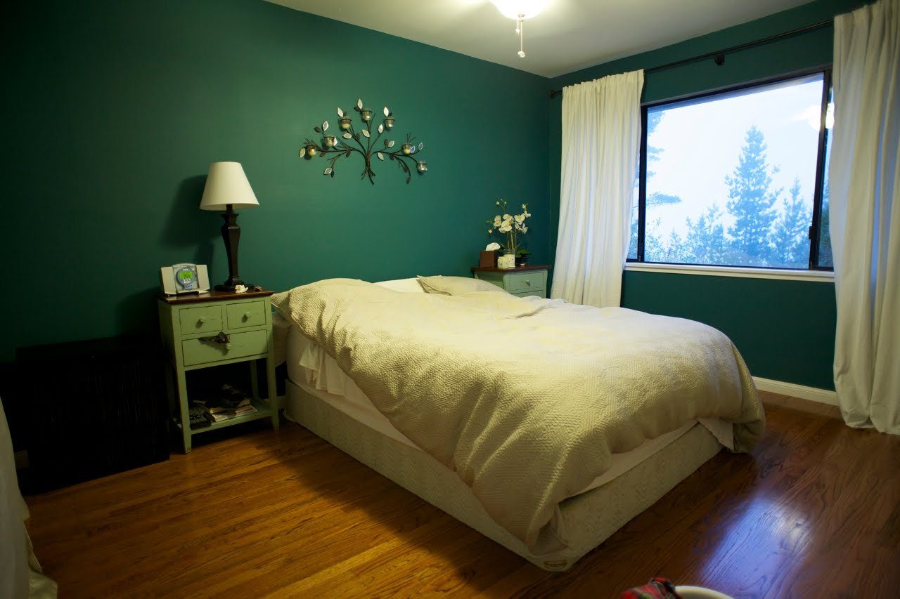 Зеленые стены в спальне