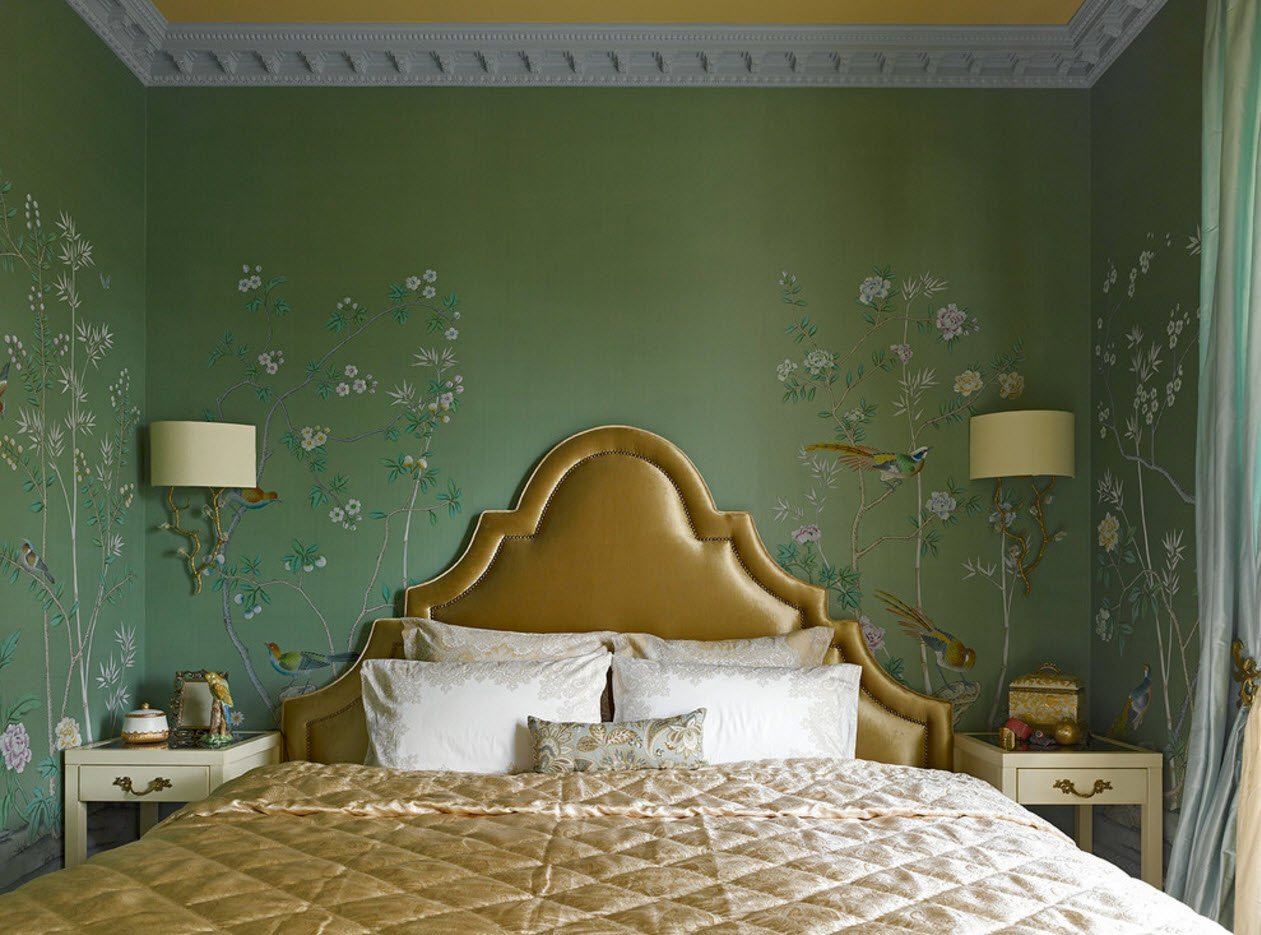 Спальня в золотисто зеленых тонах