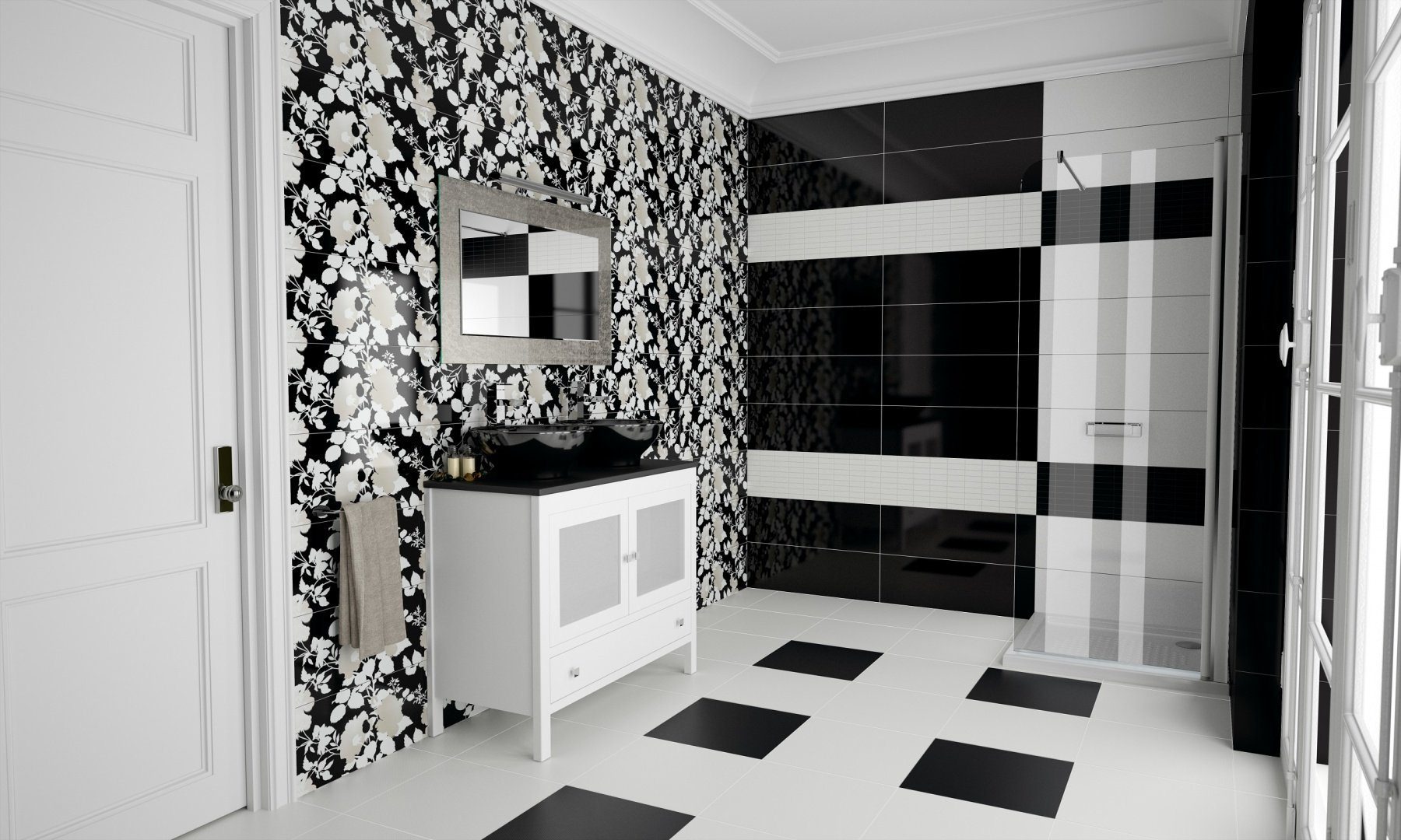 Черно-белая ванная комната
