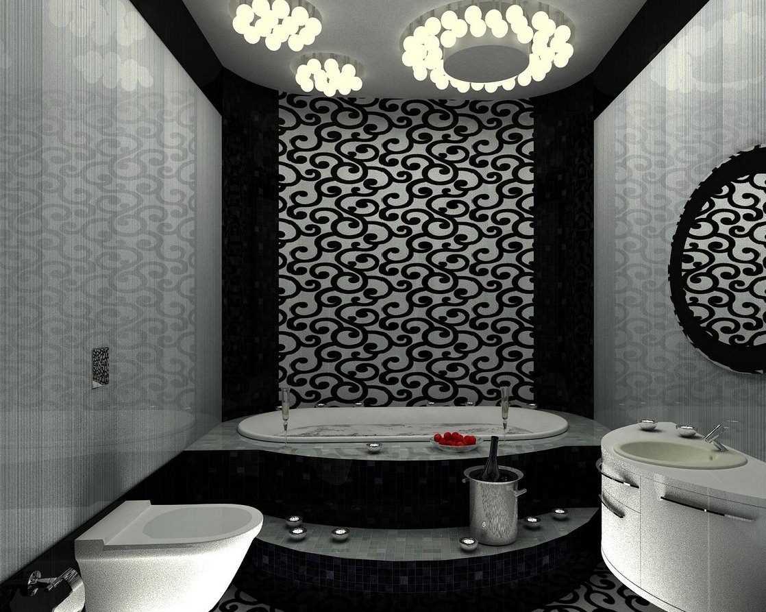 Декор ванной комнаты в черно-белых тонах