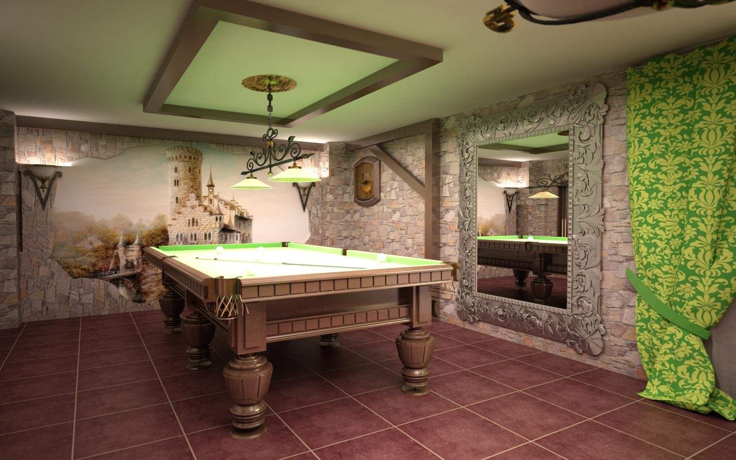 Бильярдная в цокольном этаже в стиле Неоклассика