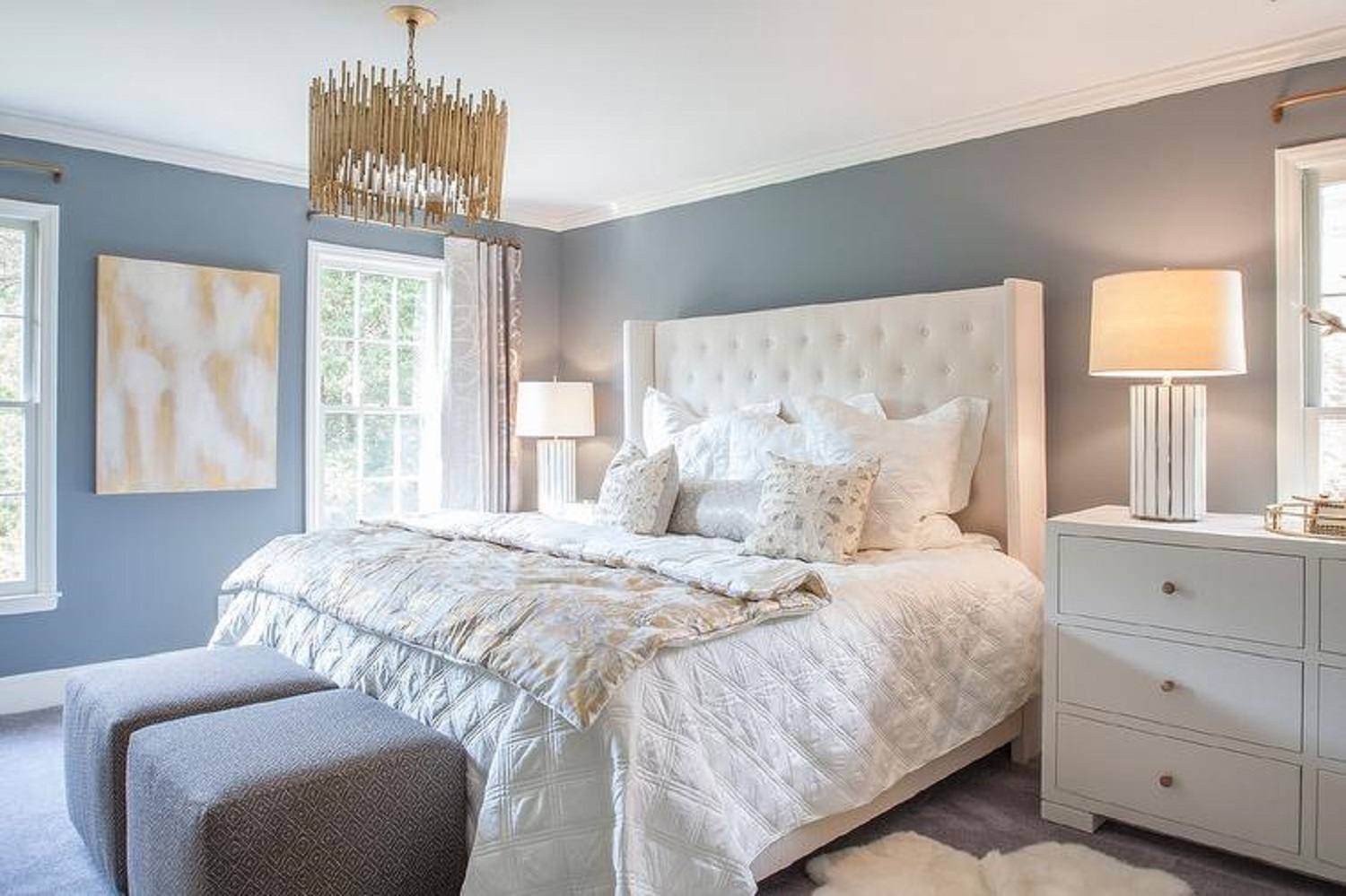 Серо-голубой цвет стен в интерьере спальни Пинтерест идеи
