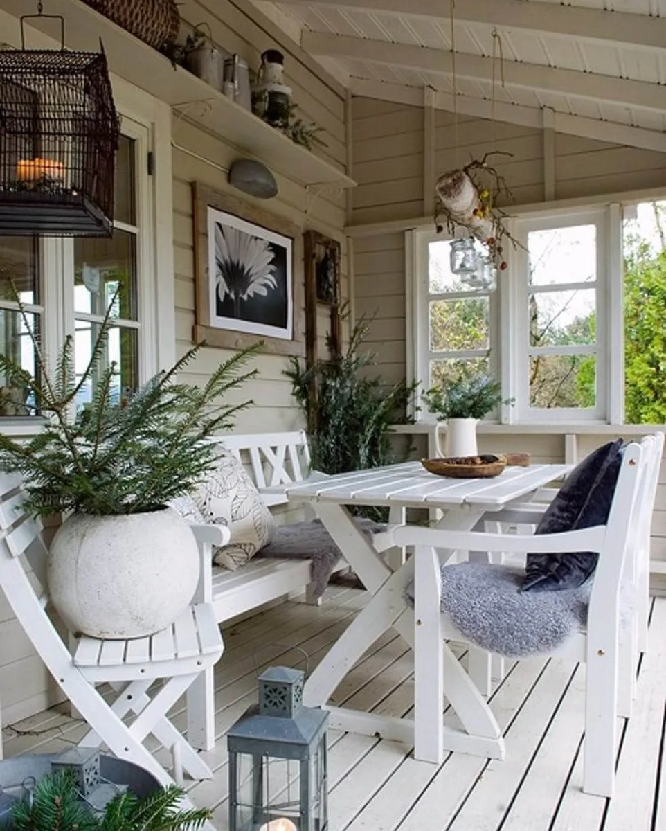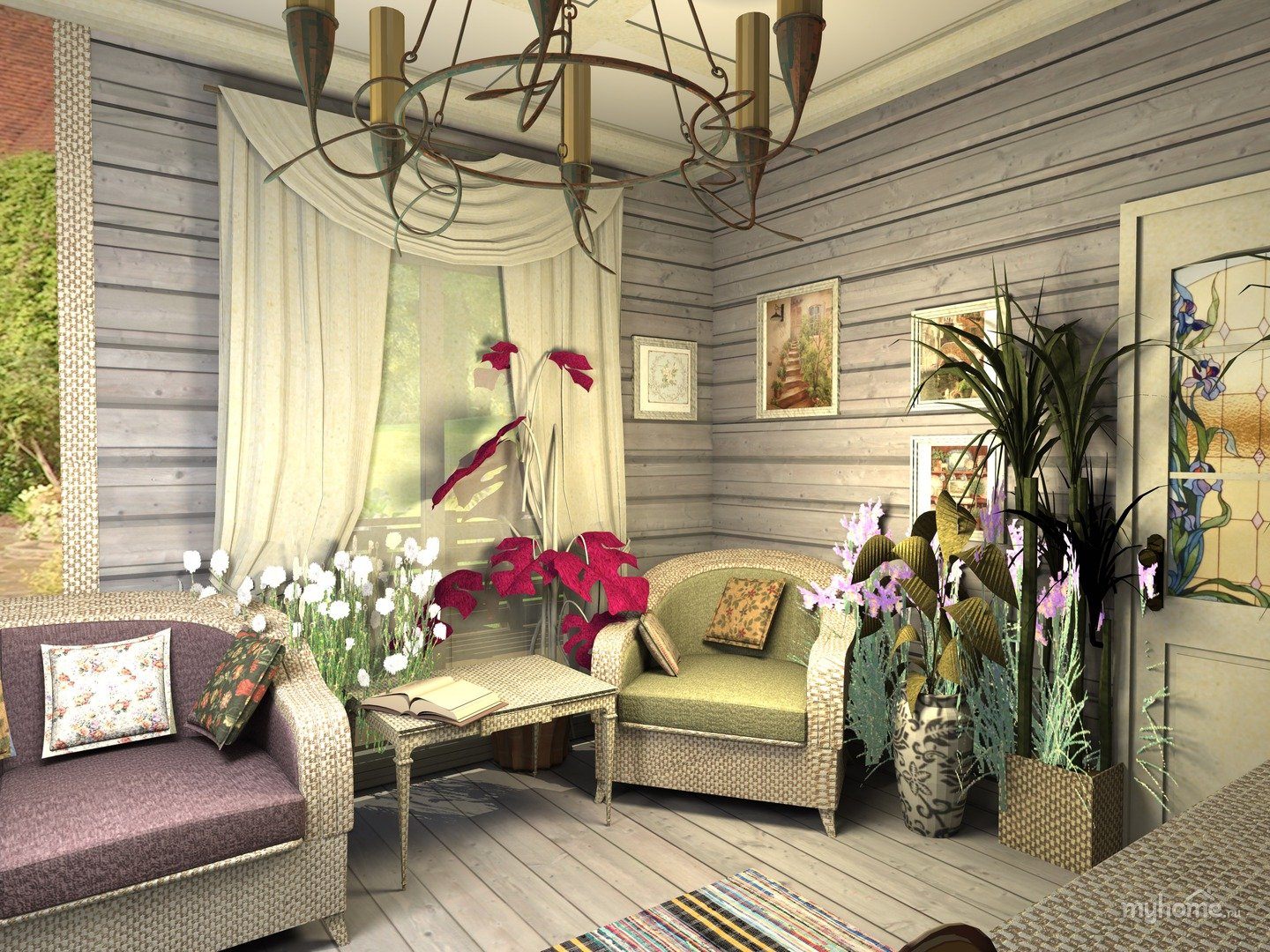 Вязаный декор в стиль Прованс в деревянном интерьере