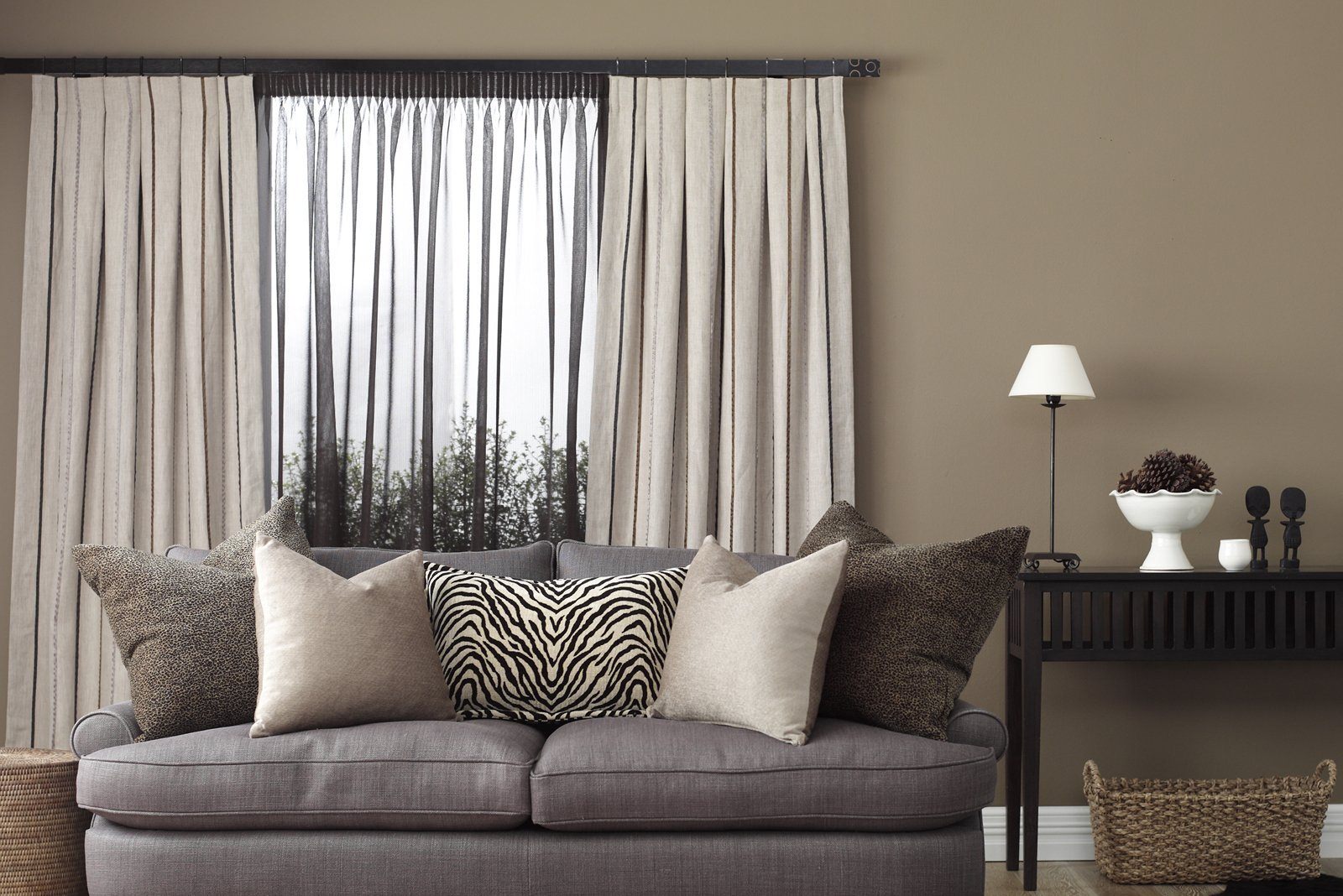 Серо-бежевые шторы в интерьере