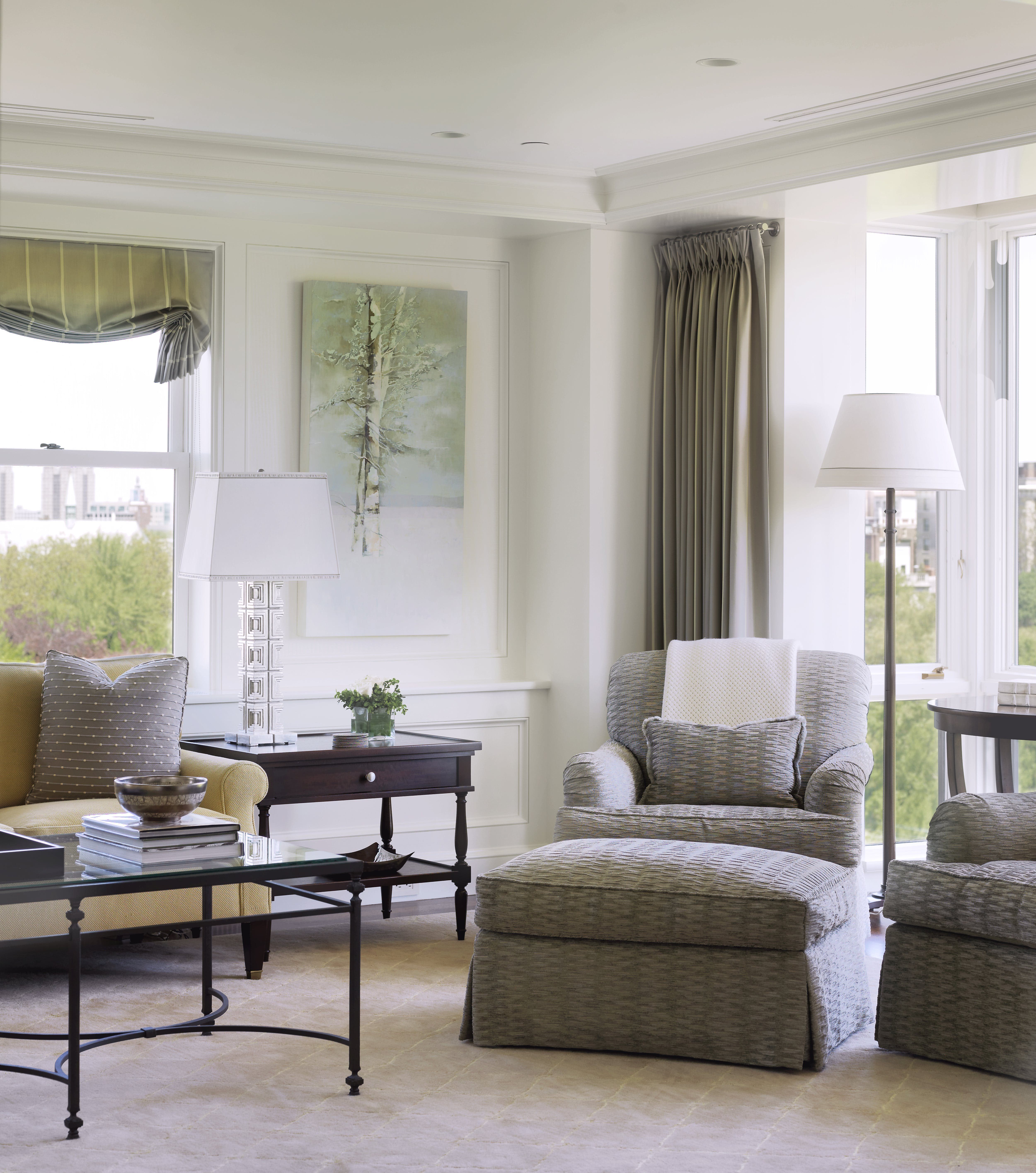 Шторы серого цвета в интерьере гостиной