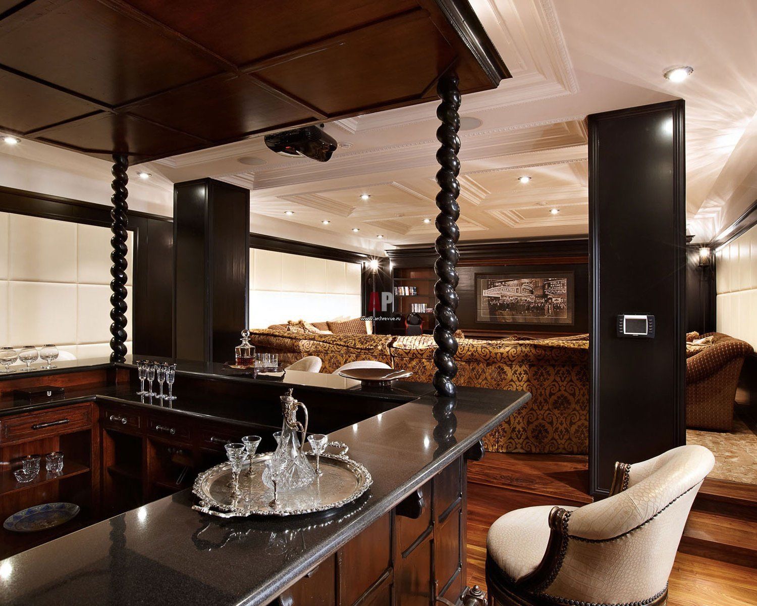 Хрустальная люстра в интерьере гостиной совмещенной с кухней
