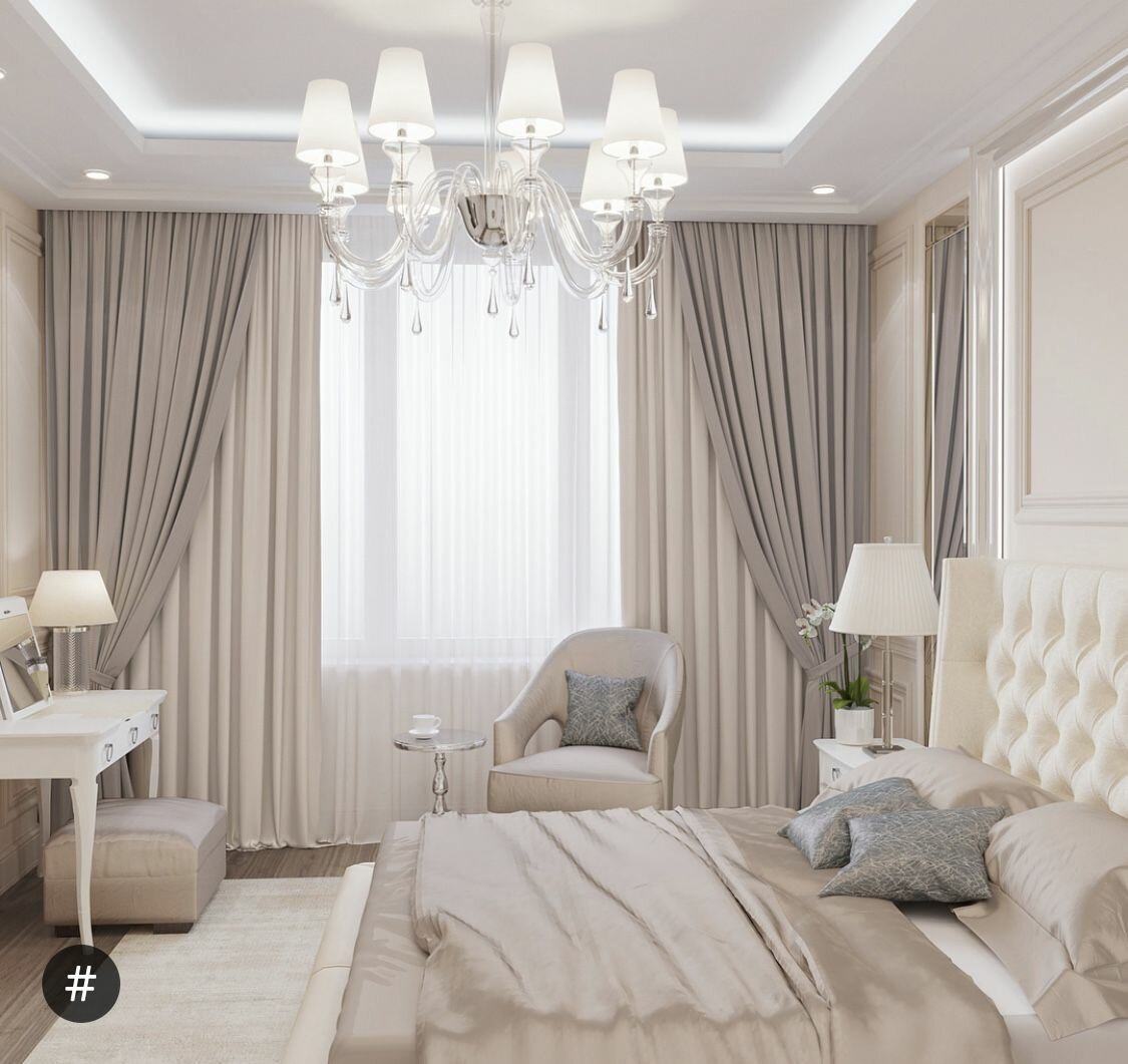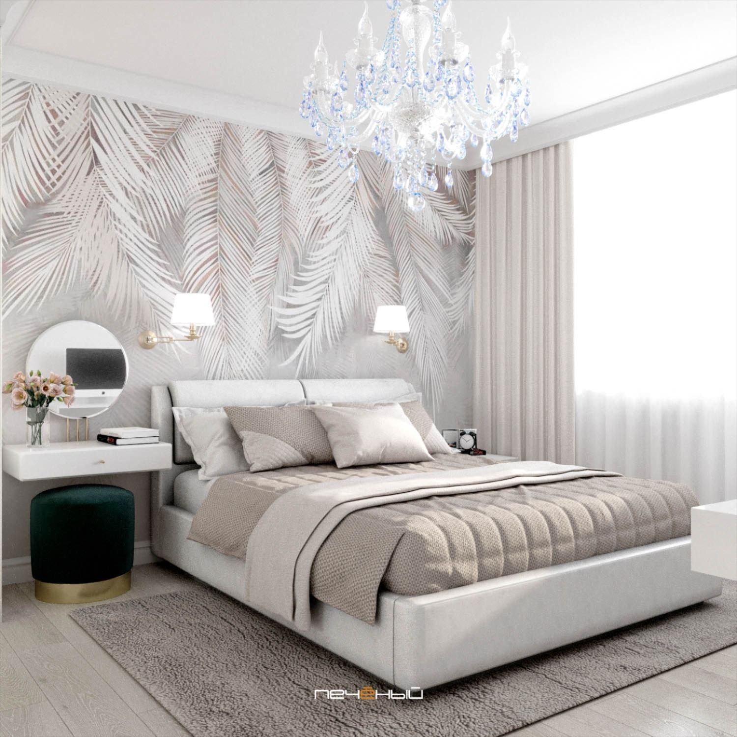 Спальня в неоклассическом стиле в светлых теплых тонах